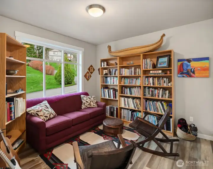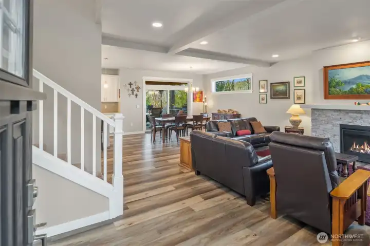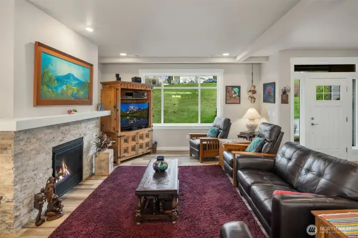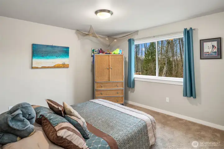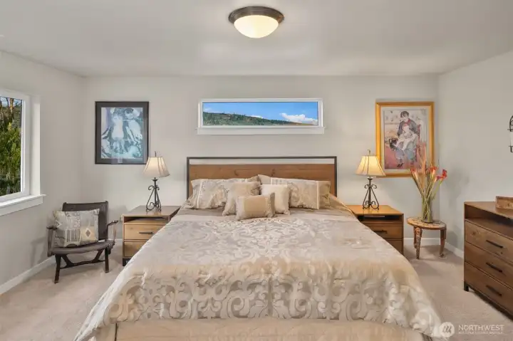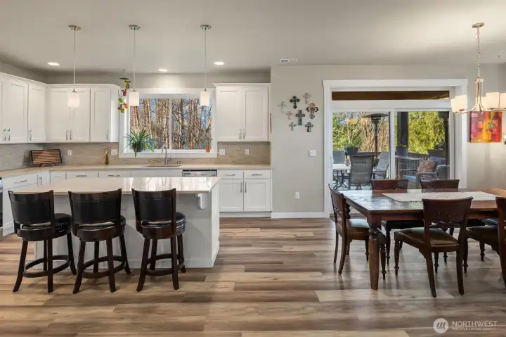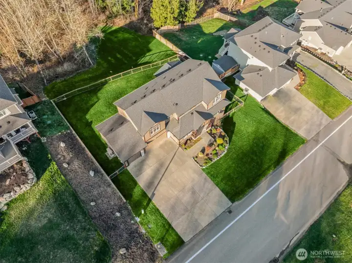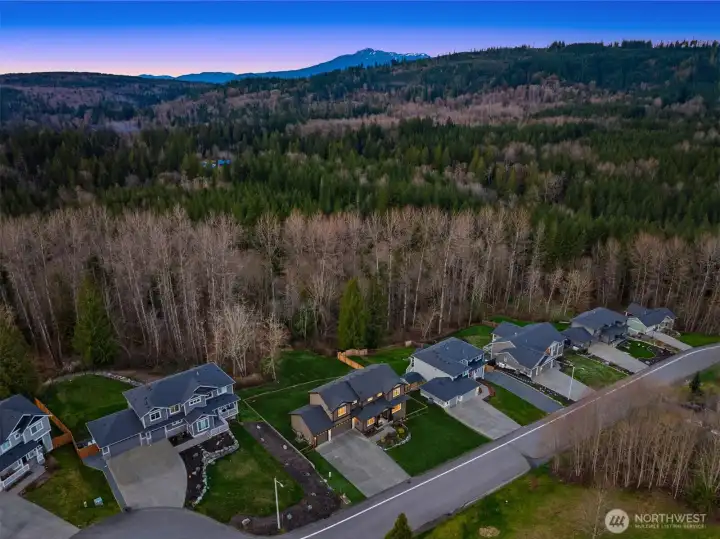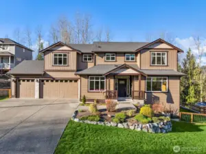Scenically poised on a shy acre greenbelt oasis in esteemed Whisperwood Estates, this pristine 2,500sf 2020 two-story boasts stunning craftsman curb appeal with spectacular views of nearby rolling foothills & Cascade mountaintops! Dramatic open floor plan with spacious rooms, tall ceilings & oversized windows filled with abundant natural light. Foyer with open rail staircase leads to grand living room with custom textured stone gas fireplace, dining room with vaulted covered deck & elegantly appointed dream kitchen with quartz counters, full-height glass tile backsplash, center island bar & tons of storage space. French doors lead to main floor den/5th bedroom with walk-in closet. Lofted upper hall with office nook leads to double-door primary with sweeping views, walk-in closet & designer 5-piece ensuite with soaking tub & luxurious rainfall shower. Generously proportioned bedrooms + top floor laundry & hall bath with convenient dual-sink vanity. Sprawling backyard extends through the forest all the way to Woods Creek. Huge driveway & massive 3-car dream garage + extra tall crawlspace with bonus room upside potential, high-efficiency furnace with heat pump & central A/C!