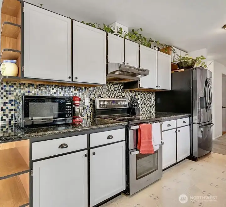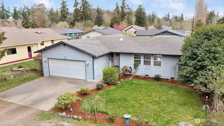 Welcome to this charming 3-bedroom, 2-bath, move-in-ready home nestled on a spacious corner lot in an established neighborhood. Step inside to discover an updated kitchen, with granite countertops, & ample counter space. The home features a sunny deck overlooking a fully fenced yard, ideal for outdoor gatherings, gardening, or simply enjoying the peaceful surroundings. For the green thumb, there are endless possibilities with this full-sun yard. Mature plantings include multiple berry bushes, Cherry tree, Plum tree, numerous roses, rhododendrons, hydrangeas, lilacs, clematis & more throughout the property that add beauty and privacy. The bonus office space is perfect for remote work or study. Recent carpet updates enhance comfort and appeal throughout the home. With its functional layout, and central location, this home combines modern living with charm and character. Attached 2-car garage. Local trails abound. A must-see!