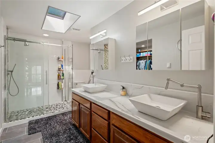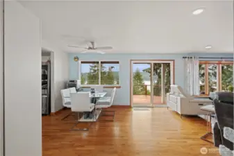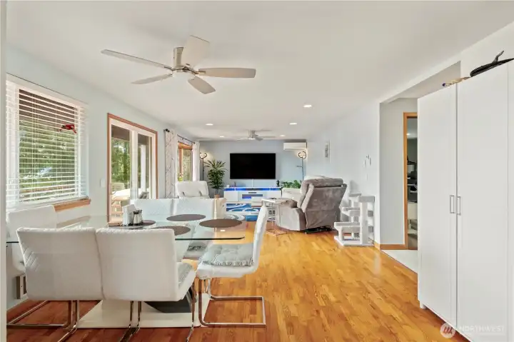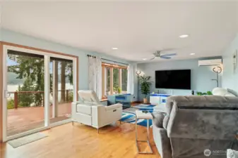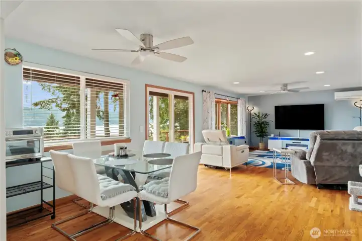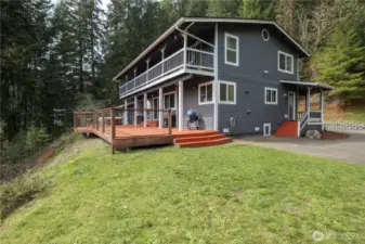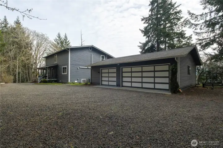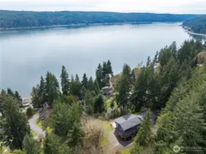 Imagine waking up to awe-inspiring views of Hood Canal, watching orcas, eagles, otters and other wildlife from every bedroom in this magnificent two-story sanctuary! This 4-bedroom, 3-bathroom home has been meticulously upgraded with new paint, windows, doors, and flooring. Every bathroom has been artfully remodeled, including the master ensuite, which includes a large walk-in closet. The open-concept living room and kitchen are perfect for entertaining, while the new ductless A/C unit ensures comfort year-round. Add a whole-house generator hookup, an oversized three-car garage with an E-car charging station hookup, hot tub, and a private beach and boat ramp. A dedicated office/playroom makes this property functional as well as beautiful. This is an ASSUMABLE VA Loan with a manageable Gap.