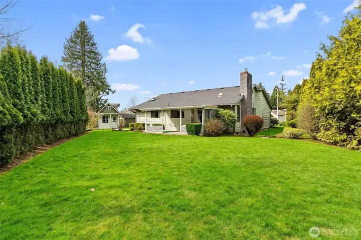 Bring your vision to life in this lovely home filled with rewarding features and room to make it your own. This is a great opportunity for a buyer who wants to add personal touches and build equity over time while enjoying the comfort of single level living. Situated on a spacious lot in a quiet CUL DE SAC, you’ll love the COVERD PATIO, tall trees that create a sense of PRIVACY and an OUTBUILDING with POWER for a separate office, gym or extra storage. Inside, the home offers TWO LIVING SPACES. One features VAULTED ceilings and large windows that fill the space with natural light. The other includes a cozy wood burning fireplace, perfect for relaxing evenings at home. The primary suite offers its own private bathroom and walk-in closet for added comfort and convenience. The hallway bathroom features a skylight that brings in beautiful natural light. Ideally located near the Marysville YMCA, Jennings Park, and just minutes from I-5, grocery stores, and dining. NO HOA! Come see this home today and imagine the possibilities!