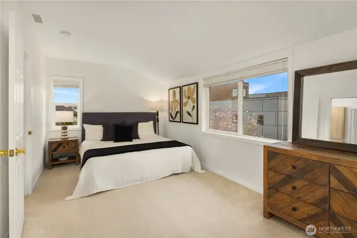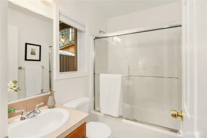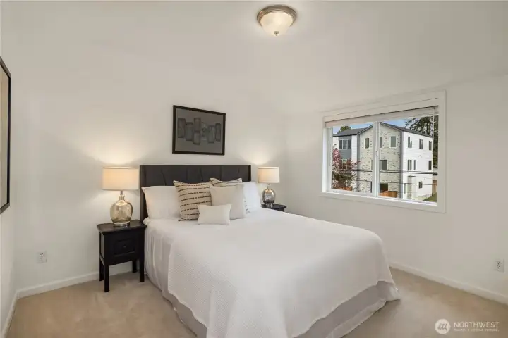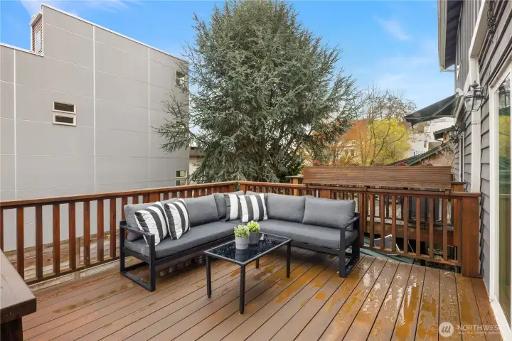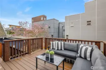 A townhome that stands out thanks to something surprisingly rare: meaningful outdoor living space. A yard, deck & patio make this property unique in a sea of “same.” Just beyond the kitchen, dining area, a large deck extends the living space outdoors—ideal for dining, relaxing, or gathering with friends. Beneath it, a covered patio creates a second outdoor zone overlooking the fully fenced yard, offering flexibility for year-round use. Inside, the main level is open & comfortable for everyday living. The living room centers around a gas fireplace & large window that brings in natural light. The kitchen features warm wood cabinetry, granite countertops, stainless appliances & a layout that connects easily to the dining area & deck beyond. New luxury vinyl plank flooring & fresh interior paint throughout give the home a crisp, move-in-ready feel. Multi-zone central air conditioning for year-round comfort. Upstairs are two bedrooms & a full bath, along with conveniently located laundry. The lower level includes a third bedroom & additional ensuite bath, creating flexible space for guests, a home office, or separate living area. A one-car attached garage provides secure parking & storage. The combination of deck, covered patio & yard creates a flexible outdoor environment that feels far more like a single-family home than a typical townhouse. All of this just moments from Ballard’s shops, restaurants, parks & transit—combining neighborhood charm with everyday convenience.
