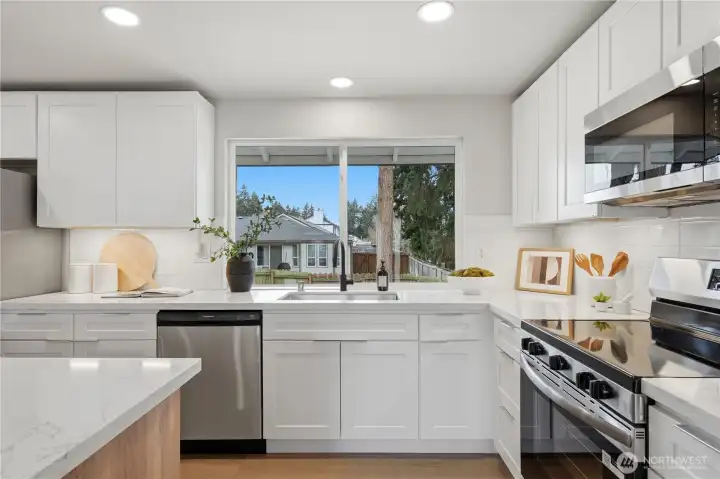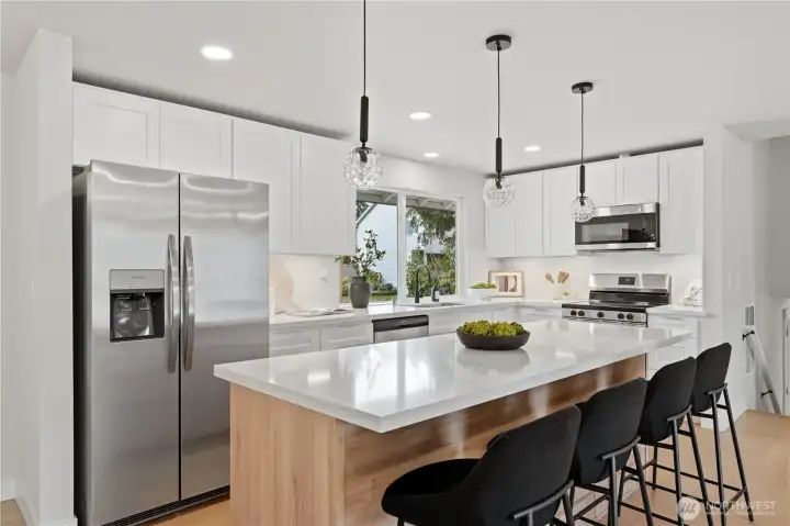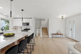 Completely remodeled with a fresh, modern aesthetic, this stunning home offers style, flexibility, and effortless living in one of Lakewood’s established & desired neighborhoods: Oakbrook. The main level unfolds into an open-concept living space anchored by a striking fireplace and a showstopper kitchen designed for both everyday living & entertaining. A large island, sleek finishes, and intentional flow create a space that feels elevated yet inviting. Features include: 2-yr old roof, waterproof LVP flooring, fresh, modern color palette, shaker style cabinets. Upstairs, the primary suite offers a private retreat with a beautifully appointed ensuite bath, while additional bedrooms provide comfort and versatility for guests, work-from-home, or lifestyle needs. Downstairs, a fully equipped mother-in-law suite expands the home’s functionality—complete with its own bedroom, kitchen, living area, private bath, and direct access to the backyard. Ideal for multigenerational living, extended stays, or income potential. Set on a generous lot, the backyard is a true blank canvas—ready to be transformed into your own private oasis, from curated outdoor living to garden retreat or entertaining space. Just minutes to Oakbrook Golf Course. A rare opportunity to own a fully updated home with flexible living options, modern design, and room to grow.