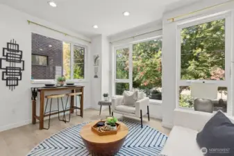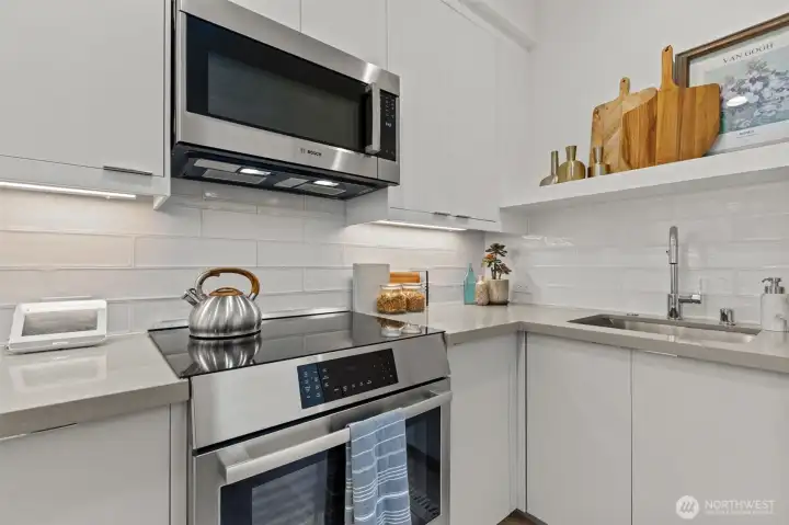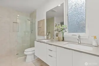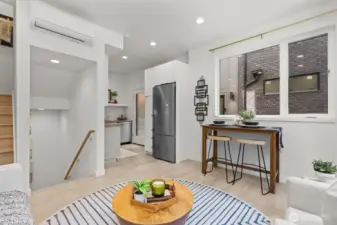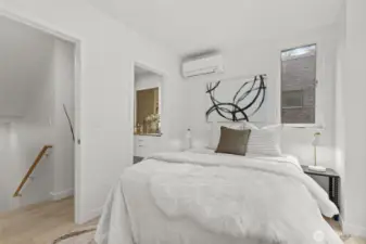 Tucked away on a quiet street, this elegant modern townhouse in Capitol Hill has it all. Large windows flood the home with natural light, highlighting a sleek kitchen with high-end appliances and quartz countertops. The top-floor primary suite features a spacious closet with custom built-ins, a walk-in shower, and a seated vanity for easy morning routines. Enjoy a rooftop deck with stunning city views, perfect for relaxing or entertaining. With a walk score of 90, you're close to parks, cafes, transit, and shops. Energy-efficient mini-split heating and cooling ensure comfort year-round. Welcome home!