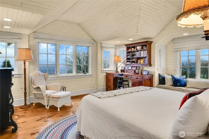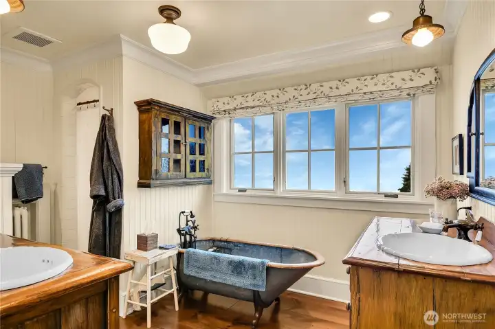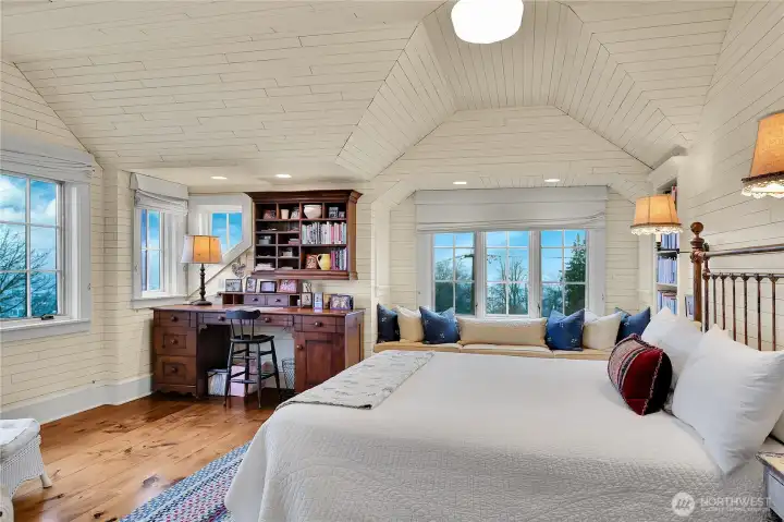 Timeless elegance meets modern comfort in this stunning 1911 residence, thoughtfully reimagined in 2008 by Schultz Miller & spanning an impressive 4,875 sq ft. Perfectly positioned to capture sweeping views of Lake Union, the Cascade Mountains & Seattle’s sparkling skyline, this home offers a rare blend of historic charm & refined luxury.Rich in character, the main level welcomes you with classic box beam ceilings, gleaming hardwood floors, & beautifully defined formal living & dining rooms—ideal for intimate gatherings & entertaining. The heart of the home is the great room, bathed in natural light & designed to showcase the breathtaking views. The chef’s kitchen is equally impressive, a butcher block island, Carrera marble counters, a 48-inch double oven, & 6-burner gas range w/griddle. French doors open seamlessly to an inviting outdoor patio with a wood-fired pizza oven, creating the ultimate setting for al fresco dining. There’s also a Jacuzzi spa for relaxing outdoors on cold PNW evenings. The top floor is a private retreat, a luxurious SE facing primary suite w/elevated outlooks, en suite bath & Easterly views. Lower lvl provides exceptional versatility, complete w/rec room, bonus space, 2nd laundry, ample storage, & direct access to the attached 2-car garage. With 5 generous bedrooms, multiple living spaces, and captivating views at every turn, this home effortlessly balances classic French Country style with modern livability—all in one unforgettable Seattle setting.