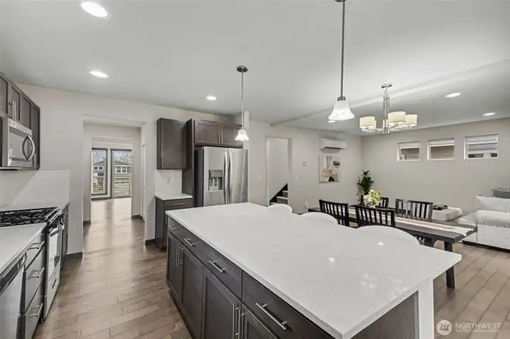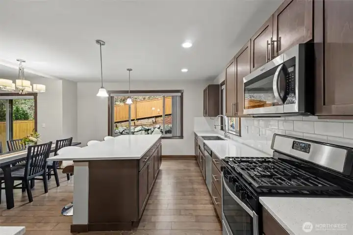 Sunrise views, privacy, and refined modern living come together beautifully in this exceptional 2018-built EAST-facing home, perfectly positioned on a quiet cul-de-sac and backing to a lush greenbelt for ultimate privacy. Bathed in abundant natural light, the open-concept design showcases elevated finishes and seamless flow, ideal for both everyday living and sophisticated entertaining. The stunning chef’s kitchen is a true centerpiece, featuring premium stainless steel appliances, rich designer cabinetry, an expansive island, and a butler’s pantry crafted for effortless hosting. Just off the great room, the oversized deck captures breathtaking sunrise and valley views, creating a serene indoor-outdoor retreat. Upstairs, the luxurious primary suite offers a spa-inspired 5-piece bath and an upgraded walk-in closet, complemented by two additional bedrooms, a beautifully appointed guest bath, and a well-designed laundry room with built-in cabinetry and sink. Thoughtfully designed for comfort and convenience, this home also includes a tankless water heater, abundant storage throughout, and an oversized 2-car garage with additional storage space. Ideally located with easy access to I5 and I405, and within top-rated Everett schools including Cedar Wood Elementary and Henry M. Jackson High, this residence delivers an exceptional blend of elegance, privacy, and commuter convenience.