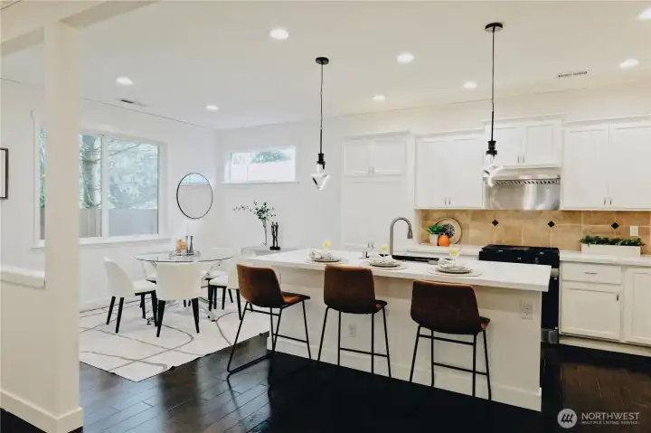 Rare opportunity to own a beautifully updated home in Haley’s Park. This 4-bedroom, 2.5-bath home has been meticulously refreshed to offer a move-in ready experience and features one of the largest floor plans in the community. Step inside to discover new crown molding, beautiful hardwood floors, and thoughtful upgrades throughout, highlighted by a gorgeous kitchen remodel that serves as the heart of the home, featuring expansive white cabinetry and stylish finishes. The inviting living room features a cozy gas fireplace and connects seamlessly to the dining area, filled with natural light. With 9-foot ceilings on the main level, the home feels bright, spacious, and airy. Fresh interior paint, new carpet, and all-new designer lighting create a warm and welcoming atmosphere throughout. The primary suite with vaulted ceiling includes a large 5-piece bath and walk-in closet. Two car garage with EV-charger. Partially fenced backyard with wood patio, perfect for summer BBQ. Located in a quiet, sought-after neighborhood with easy access to freeways, bus lines, and parks. Conveniently located near Kirkland, Bellevue, and Seattle, and within the highly regarded Northshore School District. Your dream home awaits.