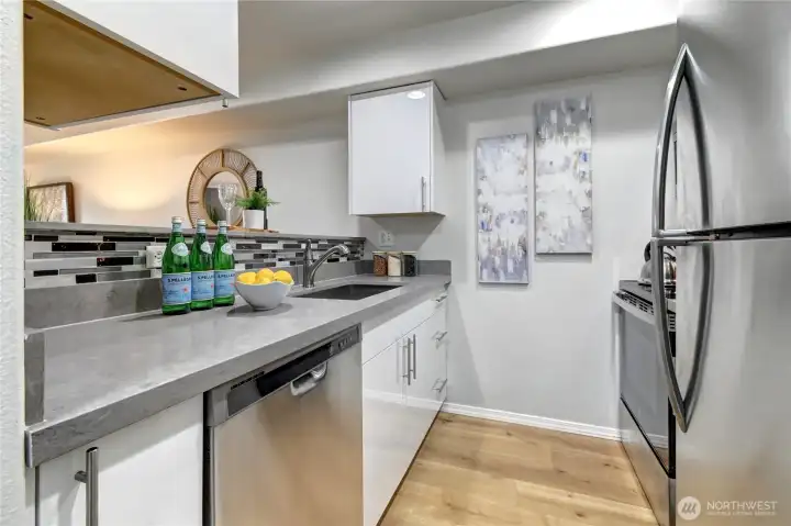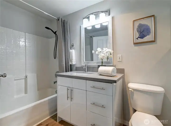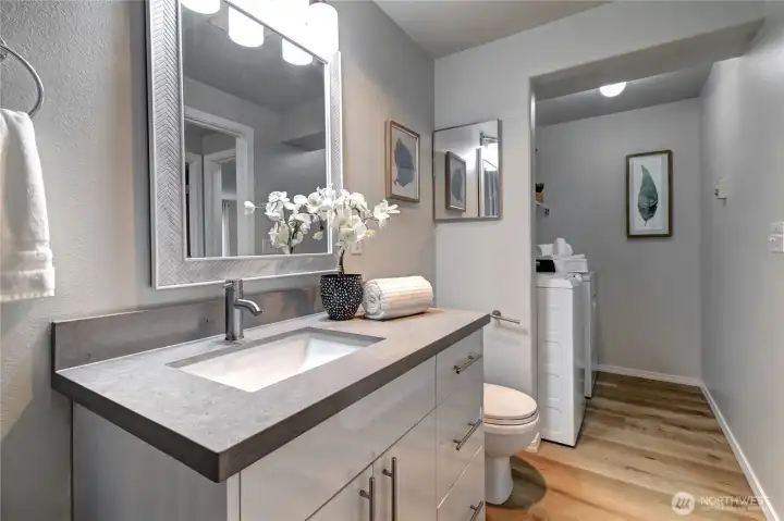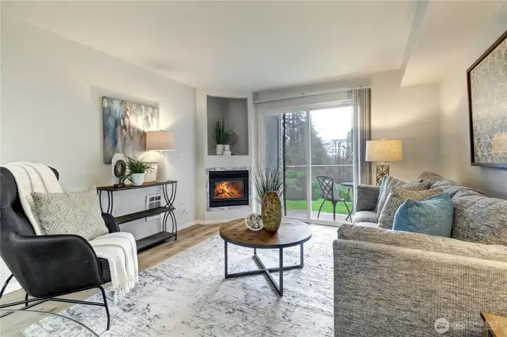 Beautifully updated, light-filled, and perfectly placed in the heart of Monroe! This move-in ready ground-floor condo brings together modern style, everyday convenience, and peaceful pond + territorial views that make coming home feel like a treat. Step inside to a bright, open living space with large windows, fresh luxury vinyl plank flooring, and a cozy gas fireplace that sets the tone for relaxed living. Enjoy morning coffee or evening cocktails on your private patio—complete with extra storage—and step right out to green space and a nearby trail for an easy dose of nature. The sleek, refreshed kitchen features quartz countertops, stainless steel appliances, and ample cabinetry, creating a clean, functional hub for cooking and entertaining. Two spacious bedrooms include a lovely primary suite with its own private bath, and the in-unit washer & dryer add everyday ease. Secure building entry and ramp access make life simple, and this unit truly stands out with both a private garage AND an additional assigned parking space. With no rental cap, this home is a fantastic first-time buy or investment opportunity. Pre-inspected and offering a one-year home warranty for peace of mind. All of this just moments from parks, schools, shopping, dining, and easy highway access. Modern updates, effortless living, and a location that checks every box-Welcome home!