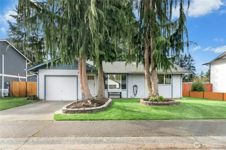 Welcome home to this charming, move-in-ready rambler in the heart of Marysville! Thoughtfully updated throughout and ready for you. Step inside to a warm and inviting family room centered around a cozy wood-burning fireplace—perfect for relaxing in evening, perhaps hosting a movie night with friends. The layout flows effortlessly into the casual dining area and bright kitchen, creating an easy, connected space for everyday living and entertaining. The kitchen shines with generous counter space, abundant storage, and beautiful tile countertops, making it both functional and inviting. A sliding door opens to the backyard, blending indoor and outdoor living with ease. Outside, you’ll find plenty of space to garden, lush lawn to gather with friends, or simply unwind in your own private outdoor retreat. Upgrades in 2021 include a new roof and gutters, fresh interior and exterior paint, new carpet, and stylish new doors—offering peace of mind and modern comfort from day one. Located just minutes from parks, schools, shopping, and dining, this home offers the perfect balance of comfort, convenience, and community!