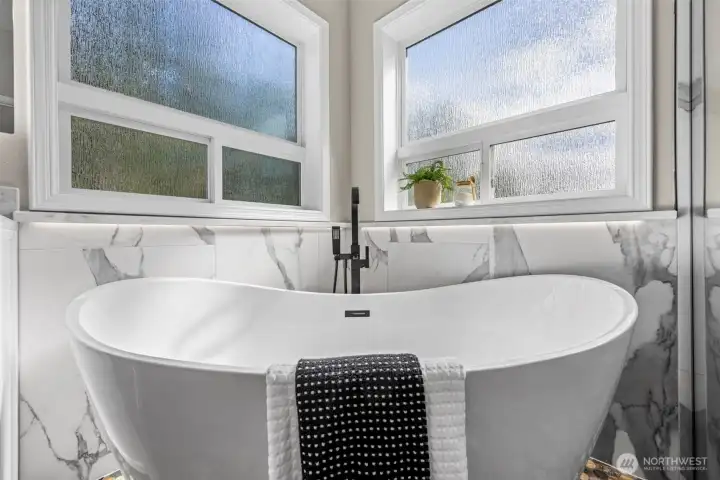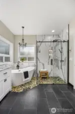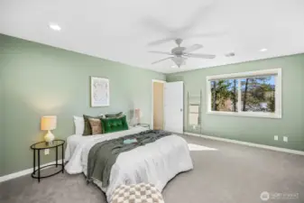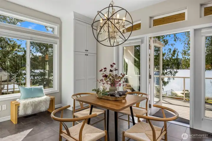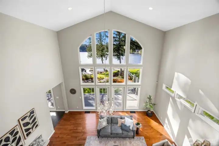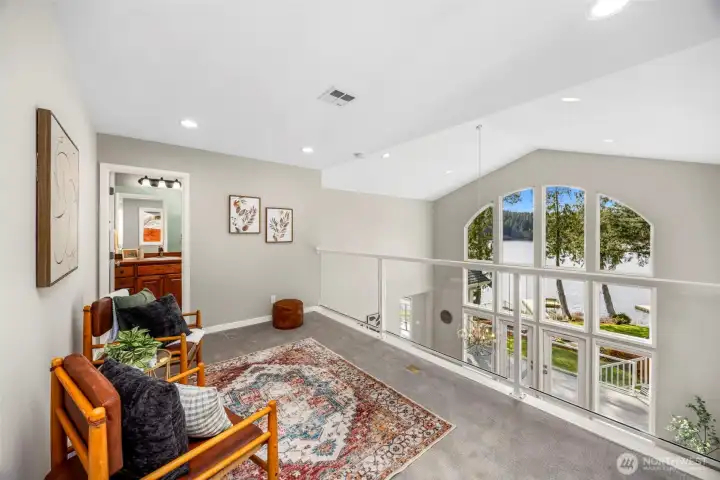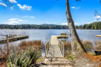 Stunning 3 BR + Bonus Wildcat Lake custom home with dock! A truly fantastic home and property. Beautiful hardwoods on main floor and 9' ceilings throughout. Jaw dropping light filled living room with gorgeous lake views, 2 story west facing wall of windows, cathedral ceiling & gas fireplace. Massive designer kitchen is inspiring space, ready for entertaining with quartz counters, stainless appliances, 6 burner high performance Cafe' gas range & large island. Main floor primary suite and newly updated spa bath with all the important things: heated floors lighted mirror, custom shower & pretty soaking tub. Huge 16' x 22' main floor media room could be epic game room. Second floor primary with ensuite has loft area with incredible lake views. Tons of storage space over garage. Bonus room off garage perfect for home office or gym. Wood wrapped windows with Hunter Douglas blinds. Trex decking with ample covered space for year around grilling. A/C for warm summer days. Professional landscaping with sprinkler system. Can't wait for sunshine summer fun! Gathering with loved ones, lakeside campfires and fishing off the floating dock. Big flat upper yard with storage shed. Large deep lot with plenty of parking + RV parking. Just 10 scenic minutes from Silverdale. Central Kitsap Schools!