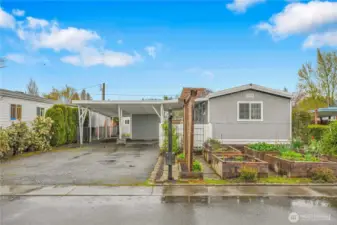 Thoughtfully updated 1-bedroom + flex space home in the Mobile Retreat 55+ community in North Salmon Creek. Originally a 2-bedroom, the home was reconfigured in 2015 to create a primary bedroom and versatile flex space with a closet, ideal for office, craft, or hobby use. As part of the remodel, major behind-the-walls updates were completed, including insulation, sheetrock, electrical wiring, and plumbing. Additional features include updated flooring, remodeled kitchen, fresh interior paint, vinyl windows, and a step-in shower. All appliances stay, including washer and dryer, tv stand and full-size bed frame that pairs with the closet system for a cohesive look. Outside is a large yard with 20 raised garden beds, three storage sheds, covered porch and patio, and a newly constructed oversized carport with additional driveway parking (up to 5 vehicles total). Convenient access to I-5, I-205, shopping, dining, and medical services. Space rent is $586.85/month (includes sewer). Buyer must be park approved. Small pets up to 25 lbs allowed. Seller to provide a 1-year home warranty (up to $600).