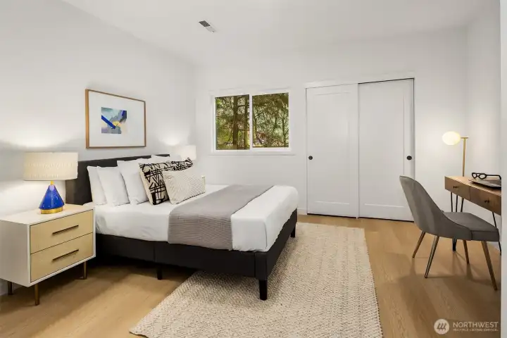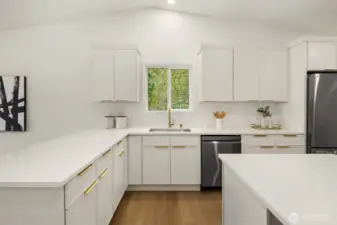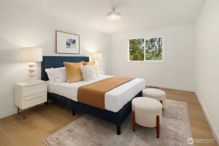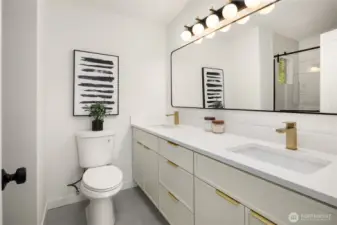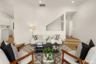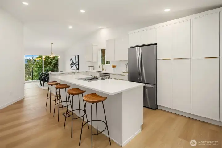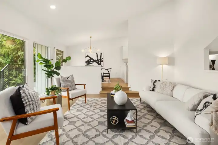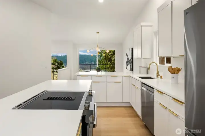 Breathtaking sweeping views of Lake Washington and the surrounding mountains in this beautifully remodeled Cedar Park residence. The main level features an open-concept living and dining space, perfect for entertaining or cozy evenings, anchored by a high-end kitchen with quartz countertops, stainless steel appliances, and thoughtful finishes. Step onto the deck to savor sunsets over the lake, morning coffee, or alfresco dining in a serene setting. Two additional bedrooms, a full bath, and a half bath complete the main level, while the upper-level primary suite offers a private retreat with a spacious layout and a luxurious 3/4 bath—your personal haven with views that inspire. The lower level provides versatile space for a family room, office, or guest suite, complete with an additional bedroom and full bath. Durable LVP flooring flows throughout the home, combining elegance with easy everyday living. Located just blocks from the Burke-Gilman Trail, with quick access to bus lines, shops, and local amenities, this home blends scenic tranquility with urban convenience—ideal for active lifestyles, lake lovers, and anyone seeking a space that feels like a getaway every day.