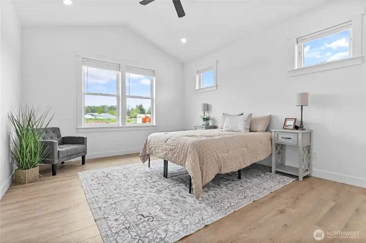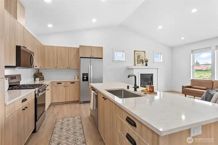 Beautiful new construction home in a desirable Everson neighborhood! This thoughtfully designed 1,615 sq/ft home features 3 bedrooms and 2 bathrooms with an open layout highlighted by vaulted ceilings and abundant natural light. Enjoy year-round comfort with ductless mini-split heating and the efficiency of tankless hot water. The kitchen shines with quartz countertops, stainless steel appliances, and modern finishes throughout. Private primary suite with walk in closet, dual vanity and beautiful tile shower. Cozy up by the gas fireplace or relax on the covered back patio while taking in peaceful mountain views. Complete with a spacious 2-car garage and located just minutes from the park and only 5 minutes to Lynden, this home offers the perfect balance of comfort, style, and convenience in a brand new neighborhood.