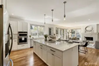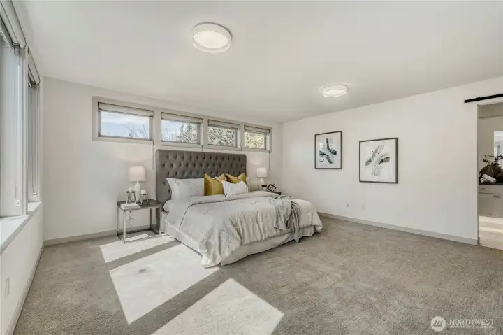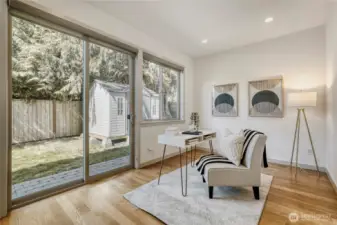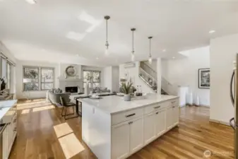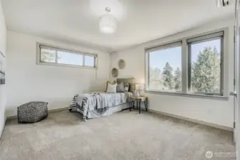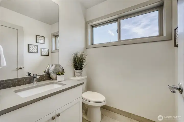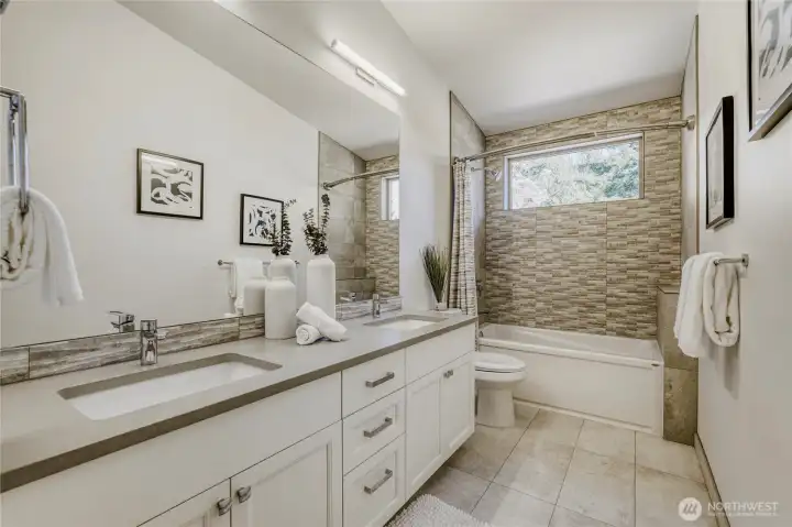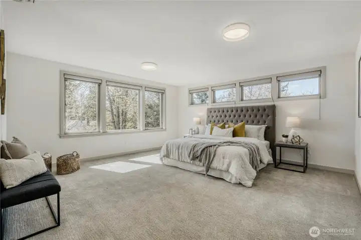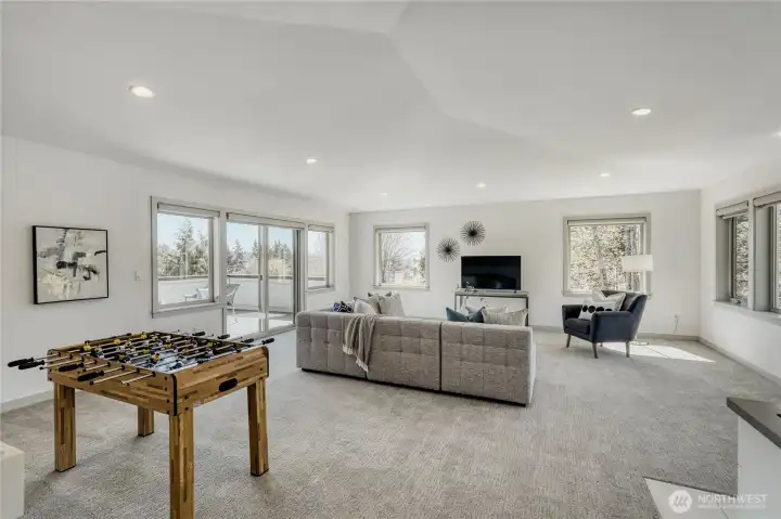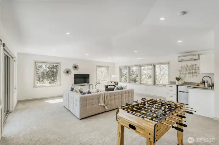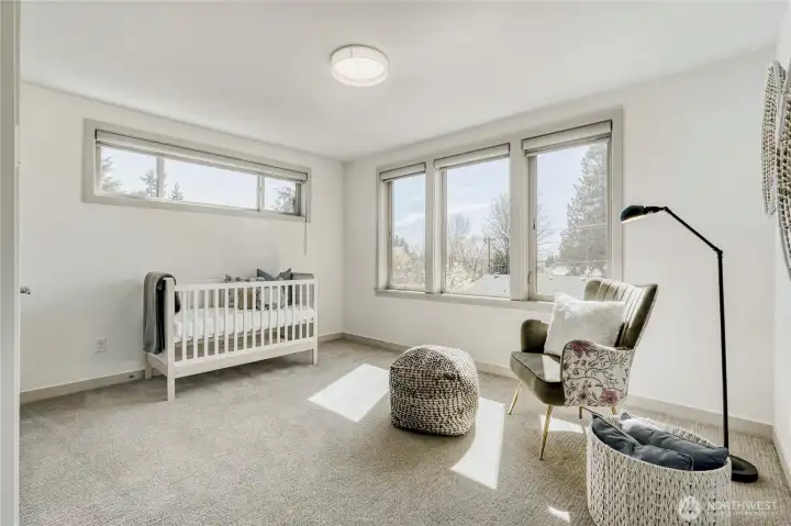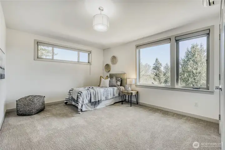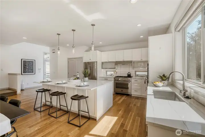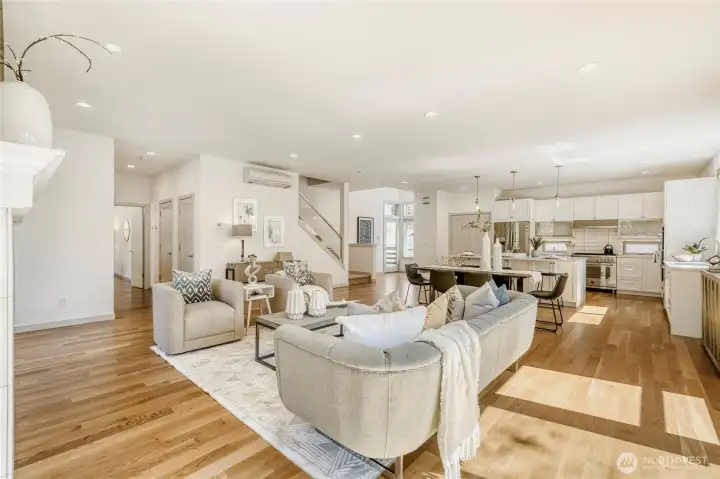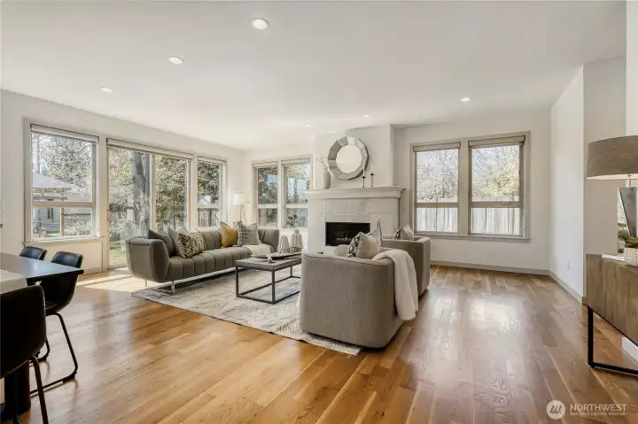 In-city convenience meets park-like living in this like-new gem near Haller Lake & Northgate! Tucked down a private drive on a dead-end street, this location is impressively peaceful & quiet, yet you're only minutes away from everything: great restaurants, parks, an upcoming Trader Joe's, Kraken Iceplex, light rail & the Interurban Trail. The open concept main level is a host's dream layout, boasting oak hardwood floors, soaring 10-ft ceilings, a centerpiece gas fireplace & plentiful windows looking out to nature. Dinner parties are effortless in the gourmet kitchen, equipped w/ high-end stainless appliances, gas cooking, walk-in pantry, & a center island w/ bar seats to watch the chef at work. 4 beds are on the upper level, including the luxe primary retreat, complete w/ a custom walk-in closet & spa-like ensuite w/ dual vanities, under-cabinet lights, soaking tub & rain shower. Versatility knows no bounds here: a main floor bedroom is great for an office or guest space, while a third-level rec room w/ a wet bar can play host to legendary movie & game nights. Systemized w/ efficiency in mind: mini-splits provide heat & A/C w/o racking up huge energy bills, & a tankless water heater heats up almost instantly. Relax on the sun-drenched rooftop deck w/ peekaboo Rainier & Cascade views, or dine al fresco on the paver patio overlooking your peaceful, private & spacious yard. Feels worlds away from it all, yet you have easy access to everything.