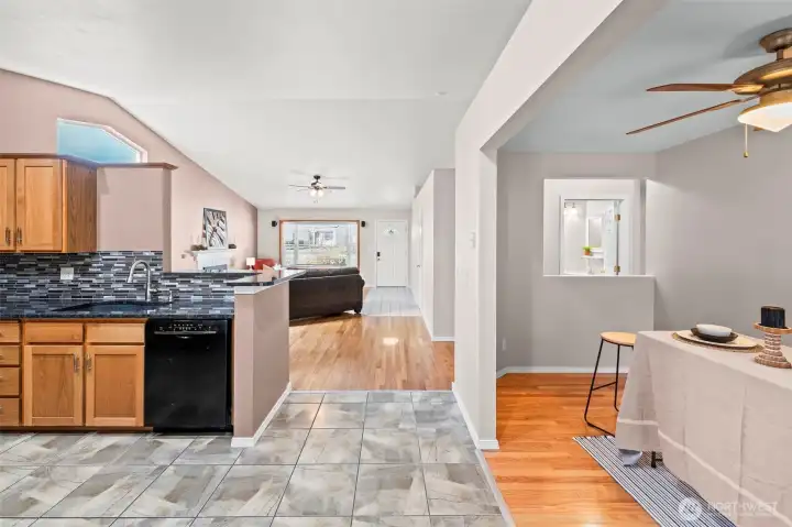 Home sweet home in Central Kitsap! This beautifully maintained 3-bedroom, 1.75-bath rambler in Sheffield Place offers easy single-level living with step-free entry and 1,440 sq ft of well-designed space and an attached garage. Vaulted ceilings, double-pane windows, and a cozy gas fireplace create a bright, welcoming living room that flows into the dining area and kitchen. The kitchen features ample cabinet space and all appliances stay, making move-in day a breeze. ? The spacious primary suite includes 2 walk-in closets and bath off primary, while two additional bedrooms and a second bath provide flexibility for guests, office, or hobbies. Step outside to a fully fenced, level backyard with deck and outbuildings—perfect for pets, play, gardening, or summer BBQs. Electric car charging, wired for generator, and a tankless water heater add everyday comfort and efficiency. Located on a quiet, paved street in a neighborhood with a community park, you’re just minutes to bases, Bremerton & Silverdale amenities, schools in the Central Kitsap School District, and commuter routes. With forced air heat, natural gas, sewer and public water already in place, this well-cared-for home is ready for its next chapter—just move in and enjoy!