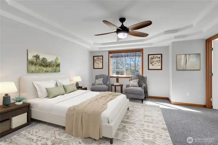 Beautifully refreshed Spanaway home just one block from Spanaway Lake! This spacious 4-bedroom, 3.5-bath home offers over 2,300 sq ft with a versatile multi-level floor plan designed for comfortable living. Enjoy fresh interior paint and brand-new carpet throughout, giving the home a clean, move-in-ready feel. The open kitchen with eating space flows into inviting living areas, while the upper-level bonus room provides flexible space for a media room, office, or guest retreat. The primary suite features a walk-in closet and a well-appointed bath. Situated on a fully fenced 7,500 sq ft lot with patio space, perfect for entertaining or relaxing. Conveniently located near Spanaway Lake, parks, golf course, and Sprinker Recreation Center. Attached 2-car garage and easy access to Pacific Ave and JBLM.