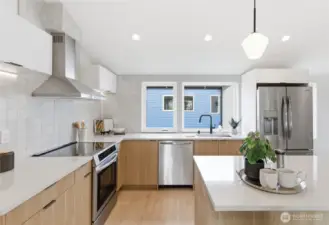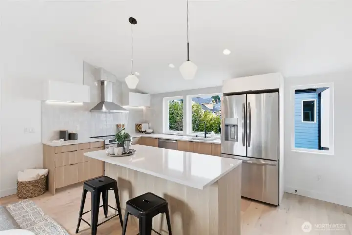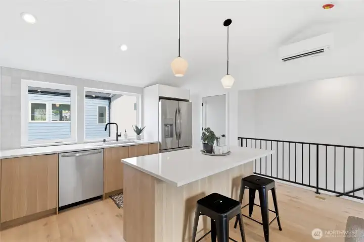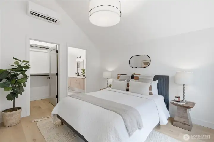 Sophisticated Ballard detached cottage offering 1,057sf of thoughtfully designed living space plus a heated 208sf garage/flex room. This 2-bedroom, 2-bath home features a dedicated office—ideal for remote work or creative pursuits. Soaring ceilings and generous windows flood the interior with natural light, while premium finishes elevate everyday living. Enjoy Bellmont cabinets, engineered hardwood throughout (no carpet), and heated floors in both bathrooms. Mini-split A/C in every room provides year-round comfort. The primary bathroom includes motion sensor lights and a dedicated bidet outlet for modern convenience. The heated garage offers flexible space for parking, storage, or a hobby room. Private backyard retreat with easy access to NW 65th dining and Downtown Ballard—88 Walk Score and 95 Bike Score. Quick routes to Golden Gardens and 15th/99 for SLU/Downtown commutes. Top-ranked schools!