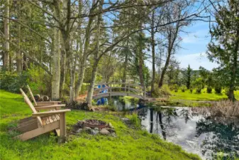 Set on beautifully manicured grounds with a private pond, winding walking paths, and storybook bridge, this exceptional estate delivers the lifestyle you’ve been waiting for. A striking exterior and expansive windows immediately draw you in, capturing peaceful water and territorial views from nearly every angle. Inside, the light-filled great room impresses with soaring ceilings, a statement fireplace, and a dramatic wall of windows that brings the outdoors in. The chef’s kitchen is built to gather, featuring rich cabinetry, expansive countertops, a generous island with seating, and seamless flow into the dining area. The primary suite offers comfort and function with a spacious layout and a custom-designed walk-in closet, while additional rooms provide flexibility for guests, work, or hobbies. Step outside to your private retreat—covered outdoor living, a charming pergola garden, and tranquil water features create a setting that feels miles away from it all. A 1,152 sq ft shop adds incredible versatility for storage, projects, or hobbies, complemented by a 480 sq ft carport and ample additional parking. This is where space, privacy, and everyday beauty come together—offering a lifestyle that feels both elevated and effortless.