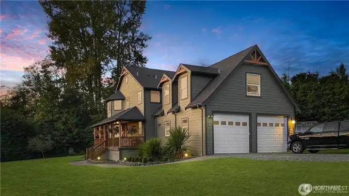 A refined Bow estate where luxury living, privacy, & purpose converge. This exquisite custom home is set on a serene one-acre homesite w/ the opportunity to acquire an additional 17.59± acres of protected conservation land, creating a rare estate offering that ensures lasting privacy & preserved natural surroundings. Anchored by a massive 56×40 heated workshop, this property delivers an exceptional live-work retreat in the heart of Skagit County. A charming covered porch welcomes you into thoughtfully curated interiors featuring formal dining & a gourmet kitchen w/ custom cabinetry, brand-new lush granite countertops, & oversized breakfast bar ideal for entertaining guests. The main level is completed by a walk-in pantry, utility room, powder bath, & an attached full-size two-car garage. Upstairs, the spacious primary suite offers a peaceful sanctuary, complemented by 2 additional bedrooms providing flexibility for guests, a bonus home office or creative space & loft/possible 4th bedroom. Recent updates including luxury vinyl flooring, updated lighting, & refined finishes enhance both style & comfort throughout. Across the property, the 3-bay heated workshop w/ 2nd level office delivers unmatched versatility, ideal for collectors, creatives, or those seeking estate-scale functionality without sacrificing elegance or privacy. This is modern-day luxury living in Bow, Washington. More than a home, this is a legacy property.