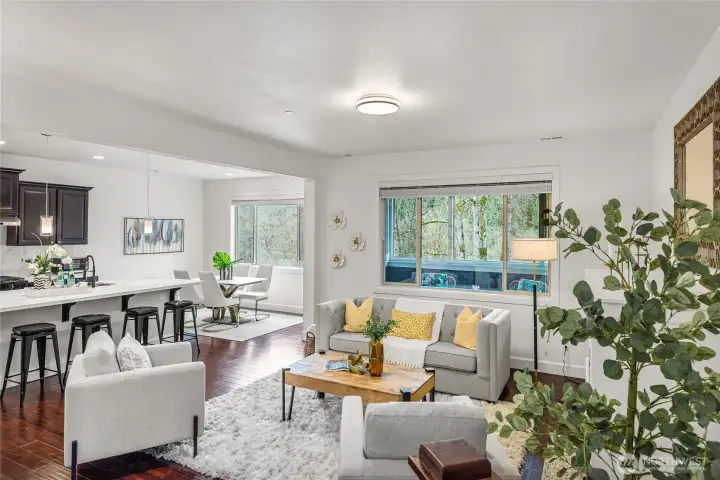 Beautifully laid-out home in the Prime location! Brand new kitchen Appliances. New Washer and dryer. Recent Installed AC. New carpet. Fresh interior painting. New counter-top for the kitchen and all of the bathrooms. Chef inspired Kitchen with oversized island. Enclosed deck to enjoy the view of the woods. Spacious living room with fireplace on the main level. Large Master suite with Spa-like Bath and separated shower. Three additional beds, one full bath & Laundry on the top level plus Big Den/office. Additional highlights are a bright bedroom downstairs with a bath and a great room. It can be turned into a mother-in-law suite or a rental. Plus, a recent renovated huge storage room. Patio+ low maintenance Fenced yard. Walking distance to grocery & Restaurants. Renowned NorthShore School District. Minutes to downtown Bothell and I-405/I-5.