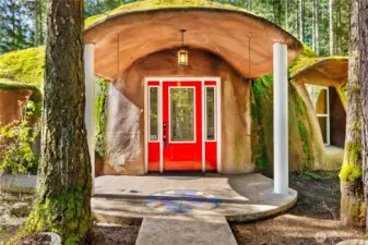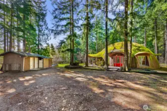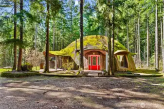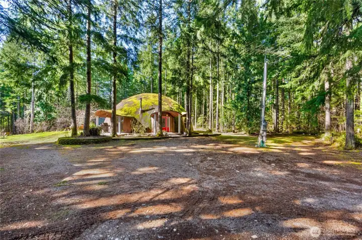 The Shire comes alive! The ORIGINAL Classic northwest "Dome home" on 1.7 in the Bald Hills. Situated in a park-like setting among garden spaces and mature trees, this uniquely designed and constructed home was built by Bob Hendricks whose legendary dome houses can be seen all around the area. This home was the builders' personal residence, and it shows. The interior has 2 floors, with 2 bedrooms plus a downstairs office/potential 3rd bedroom. The house and property has been well maintained and updated over the years. The kitchen has updated cabinets and appliances, and there is a brand-new boiler system for the hydronic heat. The fortified, concrete dome structure was built to withstand seismic stresses, heat, cold and all manner of weather. There are several well-constructed outbuildings for storage, or workshops. These buildings have concrete floors, metal roofs and insulated metal doors - very secure. There is also an open-ended metal carport in the back built on a concrete slab, that could be finished off into another outbuilding. This home needs some minor TLC and your personal touch. Come to "Bag-end" and continue the legacy of Bilbo and Frodo.