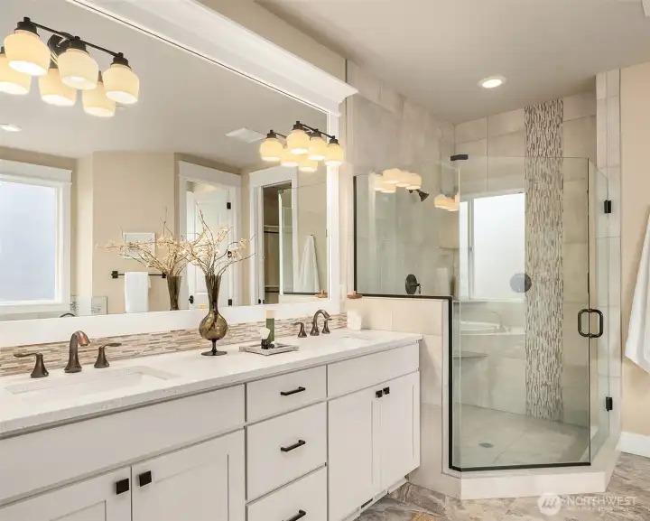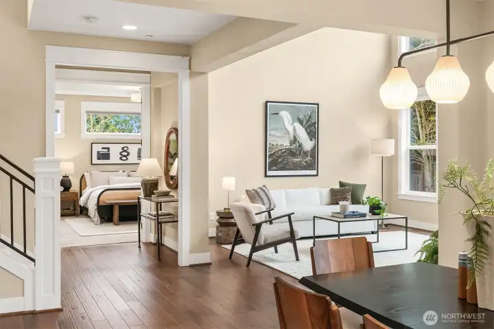 Welcome to Josephine Parc, a coveted community nestled in the charming coastal town of Normandy Park. The perfect blend of sophistication and functionality, this home has it all. A grand entrance, wide corridors and soaring ceilings create an inviting ambiance, while oversized windows create an abundance of natural light. The practical floor plan includes a spacious office/bonus room off the entry and main-level primary suite that provides accessibility without sacrificing privacy. An open layout, chef’s kitchen, wine bar, and multiple outdoor patios make entertaining effortless. A third garage offers flexible space for a home gym, workshop, studio, or extra storage. Upper level features an expansive, versatile living area with views of the Sound, plus a fully equipped laundry room adjacent to three sun-drenched bedrooms. Uniquely positioned at the end of a cul-de-sac, this location feels private yet connected. A lifestyle that offers convenience, tranquility, and a strong sense of community. This is the one you’ve been waiting for.