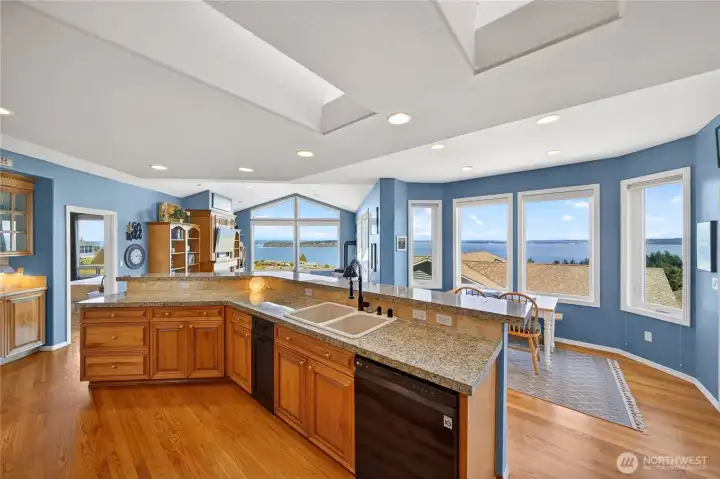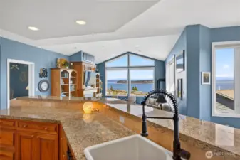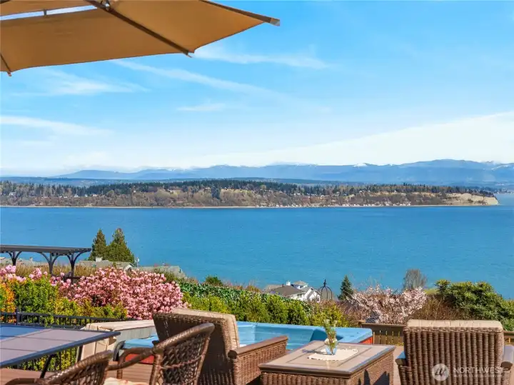 Perched above the shimmering waters of North Puget Sound on Whidbey Island, this exceptional home captures truly breathtaking, panoramic views stretching from Mount Rainier to Mount Baker and across the full sweep of the Cascade Mountains. From sunrise to sunset, the ever-changing sky and water create a living work of art visible from nearly every room. Designed for effortless main-level living, the home offers a seamless blend of comfort and elegance with expansive NEW windows that frame the scenery and fill the interiors with natural light. The open-concept living spaces flow beautifully to generous outdoor decks—perfect for entertaining, relaxing, or simply soaking in the stunning Northwest vistas. Ideal for multigenerational living or flexible lifestyle needs, the thoughtfully designed layout provides ample space and privacy, including lower-level accommodations perfect for guests, extended living, or potential separate quarters. Situated just minutes from the Clinton ferry for easy access to the mainland, this property combines tranquility with convenience. Lush, established landscaping enhances the setting, creating a peaceful retreat that feels worlds away while remaining close to everyday amenities. Experience the best of Pacific Northwest living—where dramatic views, versatile living spaces, and an unbeatable location come together in one remarkable offering.