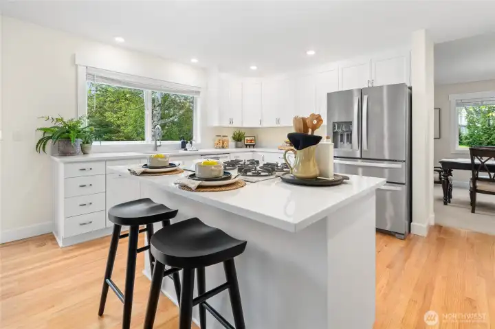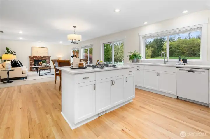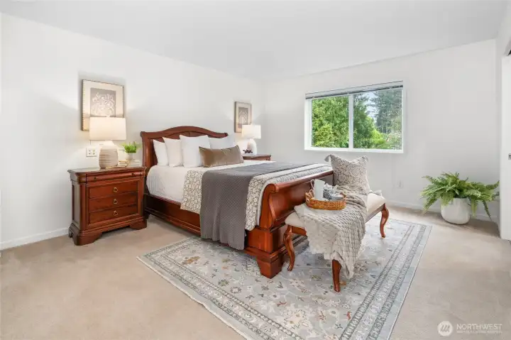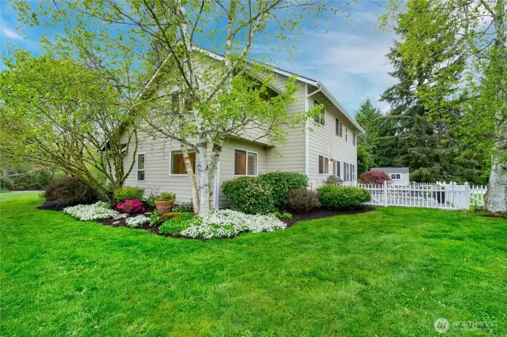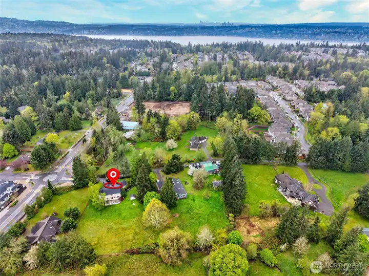 Exceptional custom built Sammamish Town Center home offering rare scale, privacy & future potential. Set on a sprawling, flat, west-facing sunny lot, this property delivers an estate-like setting surrounded by mature landscaping, creating a peaceful retreat just moments from everyday conveniences. It also presents a unique opportunity for potential townhome development or long-term investment. Recently remodeled kitchen is the centerpiece of the home, featuring a stunning oversized island w/ seating for three & flowing seamlessly into bright, inviting living spaces filled with natural light & tranquil garden views. A main floor den w/ French doors offers ideal flexibility for work or guests. Two generously sized bedrooms, updated millwork, new interior paint & a gas fireplace enhance comfort throughout. Outdoor living shines with an expansive patio and natural gas BBQ hookup, overlooking the sprawling, private yard. This exceptional setting is not only peaceful and sun-filled, but also a haven for wildlife—frequent visits from hummingbirds bring a sense of calm & connection to nature, creating a truly special backyard experience. The mature landscaping, garden space & open sky exposure combine to make this property feel like a private retreat. Privately situated on a quiet dead-end street and close to parks, trails, shopping, dining & top amenities. Lovingly maintained by the original owner—an extraordinary opportunity combining estate living with future upside.