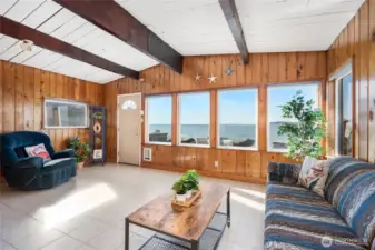 12 steps from the beach to your back door...this is truly waterfront living! Charming mid century 2 bedroom beach cottage features original cedar paneling, wood burning fireplace + open beam and vaulted ceilings in the living room and kitchen. Unbelievable westerly views from the ocean-front patio and incredibly easy access for beach fires, clamming, crabbing, boating and beach combing right out your door. Enjoy breathtaking sunsets, panoramic water views, and frequent eagle sightings. Bonus: driveway parking for multiple vehicles. Fantastic Birch Bay location steps from the famed C-Shop, Birch Bay State Park and just minutes to the USA/Canada borders and I-5. Don't miss this gem nestled between Seattle, WA and Vancouver, BC...low bank waterfront homes don't come on the market often!