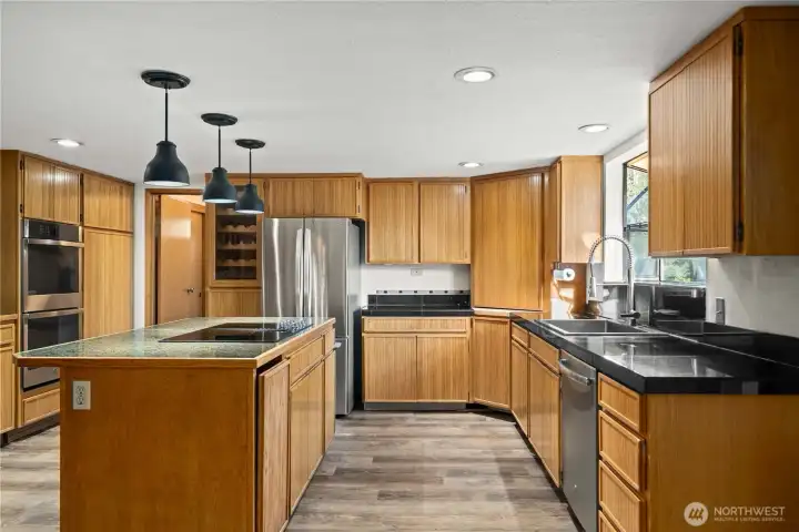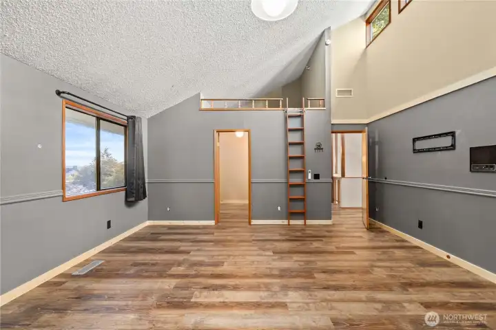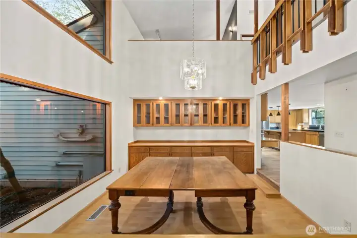 Discover a truly one-of-a-kind estate designed for multi-generational living, set on a full acre of beautifully curated grounds. Featuring two luxurious primary suites, this home offers a rare opportunity for flexibility and privacy. The main-level retreat boasts a spa-inspired bath with jetted tub, private sauna, and its own enclosed porch—while the upper-level primary wing impresses with vaulted ceilings, loft-style living, and a dedicated office space. Inside, soaring ceilings, a dramatic catwalk, custom built-ins, rich wood accents, and a stylish wet bar create an unforgettable living experience. The chef’s kitchen is outfitted with stainless steel appliances, double ovens, and custom cabinetry—perfect for entertaining. Step outside to your own private oasis with a barn, greenhouse, charming playhouse or chicken coop, winding paths, arbors, and lush mature landscaping. Thoughtful updates including a new roof, LVP flooring, and a water filtration system complete this exceptional property.