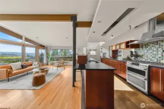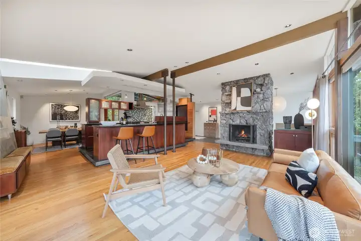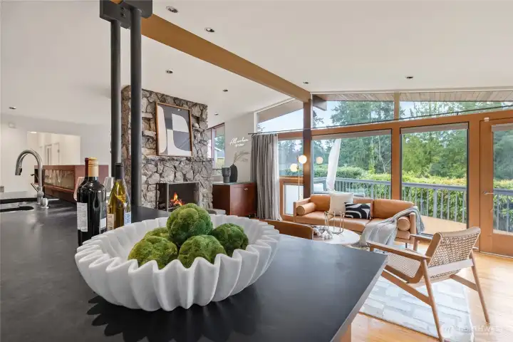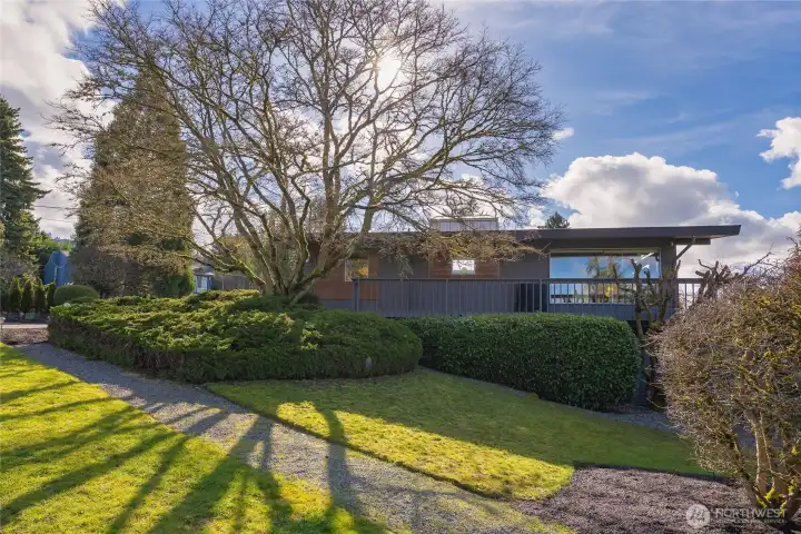 Paul Kirk custom home capturing sweeping Olympic sunset, city, and mountain views in the coveted Somerset neighborhood. Set at the top of a quiet coner lot, this timeless mid-century modern blends stone, glass, and natural wood into clean architectural lines and light-filled spaces. Vaulted, beamed ceilings and walls of windows frame an open, airy floor plan designed for both everyday living and memorable entertaining. The chef’s kitchen with high-end stainless appliances anchors the main level, while a spacious rec room with wet bar, skylights, and seamless access to the view deck extend the living areas outdoors. Recent improvements include a new roof (2021), new HVAC system with furnace, A/C (2026), water heater (2023), remodeled main level with new laundry (2023), and updated second floor (2025). Thoughtful landscaping, automated irrigation, and a private sport court enhance the corner lot setting. Enjoy access to a private community pool shared by only a small group of 11 homes, protected view corridors! Minutes to top-rated schools, shopping, dining, and easy freeway access.