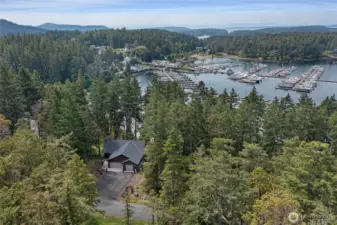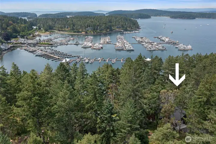 Stunning 4 bedroom, 3.5 bath home in premium location with protected Roche Harbor Marina views. Designed for both comfort and entertaining the spacious layout features an open-concept living area, expansive windows, 7-speaker surround system, 10-ft ceilings throughout the main floor, a propane fireplace, and a 3-car garage. The gourmet kitchen anchors the heart of the home featuring granite counters, a farmhouse sink, and custom cabinetry. The primary suite offers a soaking tub, 3-person steam room, and deck access to the hot tub overlooking the marina. Short walk to airstrip and resort amenities, plus from your yard you can access a popular foot path that leads directly to the resort. Make this your private front-row seat to all the activities Roche Harbor has to offer, including July 4th fireworks.
