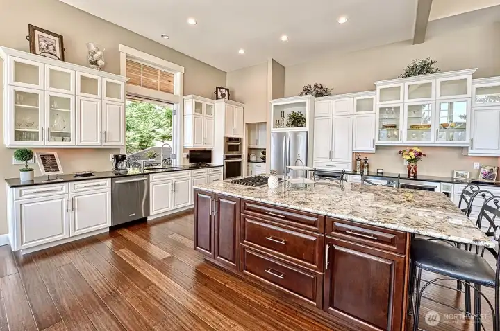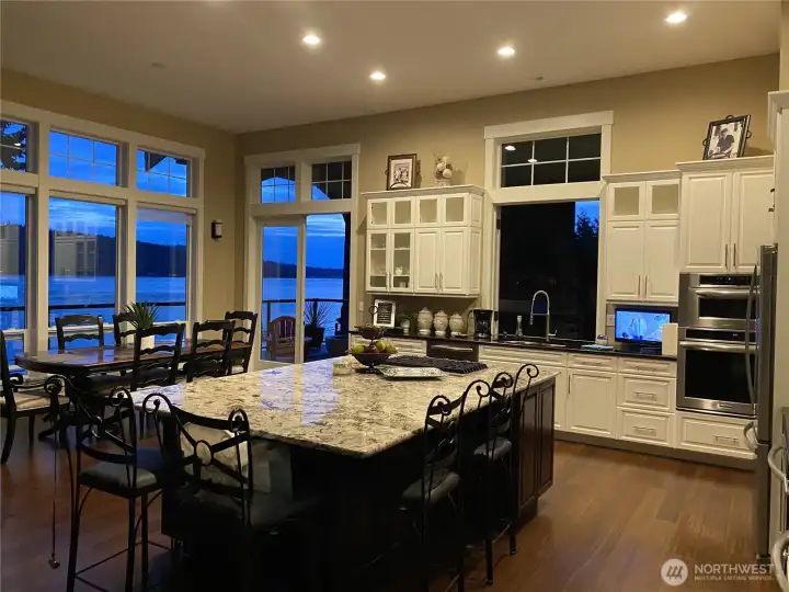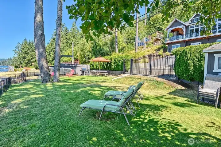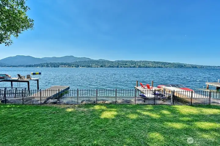 Luxury living on Lake Whatcom! Experience refined waterfront living with sweeping lake views from nearly every room in this stunning contemporary residence on the sunny side of Lake Whatcom. Set on a private 0.56-acre lot with 80 feet of pristine shoreline, the property offers expansive parking and potential for building expansion. The main floor features a thoughtfully designed open layout with floor to ceiling windows, spacious living room, dining room and chef's kitchen with a large island. Custom cabinetry and Butler's pantry. All flowing through a custom-built pass-through window to the large covered outdoor living area. With a statement fireplace and a separate hot tub deck, all overlooking the water. The main floor primary suite provides a peaceful retreat with gorgeous views. The lower level offers 2 spacious bedrooms, full bath, versatile flex room, Second kitchen and laundry room. Lower area is ideal for guests, extended living or potential rental use. The waterfront is equipped with two docks, propane, power, hot and cold water, irrigation and beach storage All creating a Turnkey Opportunity for Summer Fun, Recreation and Relaxation.