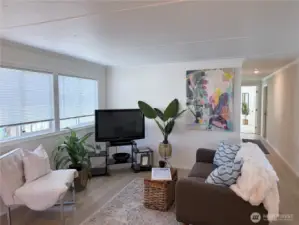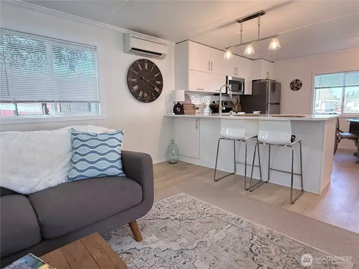 Beauty meets COMFORT & convenience in this budget-friendly, tastefully updated 2-bedroom, 1-bath mobile home in a safe and friendly ALL AGES park! Inviting landscaping & private yard in a quiet corner of the park - complete with carport, storage shed, and patio to set up your BBQ and enjoy the outdoors. BRIGHT, welcoming atmosphere with fresh paint inside & out, new flooring, new vinyl windows, & energy efficient heat pump for AC. Spacious eat-in kitchen with NEW stainless appliances, quartz counters, quality soft close cabinets. Large primary bedroom, NEW washer/dryer. SUPER location, just off Hwy 7, close to shopping (Walmart, Starbucks), & new transit center. Don't miss the opportunity to make this charming, unbeatably priced home yours!