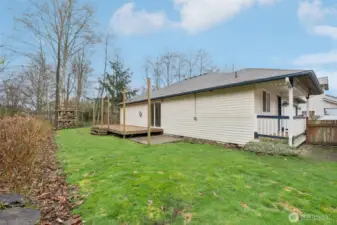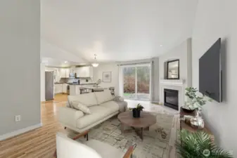 Charming 3-bedroom, 2-bath rambler nestled on a private, secluded lot in North Lynnwood. This turnkey home sits at the end of a quiet cul-de-sac and backs to a peaceful greenbelt, offering both comfort and privacy. The updated kitchen features stainless steel appliances and quartz countertops, flowing seamlessly into a spacious great room with vaulted ceilings and a cozy gas fireplace. A sliding glass door opens to a generous deck and expansive backyard—perfect for entertaining or relaxing outdoors. The inviting primary suite includes a full bath and walk-in closet. A convenient laundry room offers direct access to the backyard. The oversized 2-car garage provides ample storage with built-in shelving. Ideally located near the I-5 and Ash Way transit station, with easy access to I-5 and 405, and just minutes from shopping, dining, Costco, and Alderwood Mall.