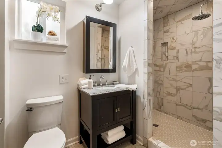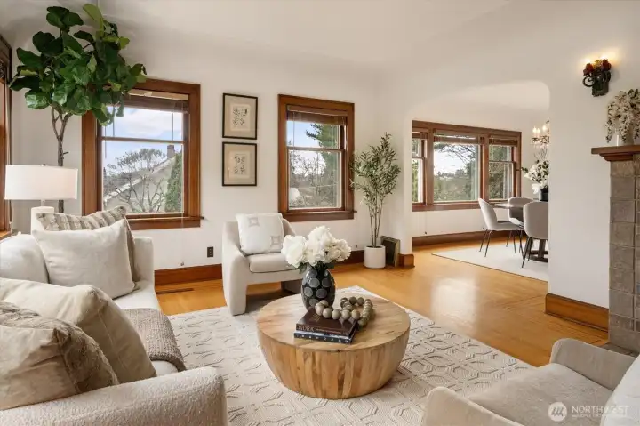 Tucked into one of Seattle’s most coveted pockets near UW, University Village, and Seattle Children’s, this timeless 3-bedroom, 2-bath Craftsman offers a rare blend of privacy and refined living. Set on a private corner lot, the home is filled with natural light from expansive south-facing windows. A classic tiled fireplace and gracious dining room create an inviting backdrop for conversation and gathering. The thoughtfully remodeled kitchen opens to a deck with city views—an ideal setting for quiet reflection. Flexible lower level with guest suite and potential kitchenette. Attached garage, ample parking, and garden space complete this serene urban retreat.