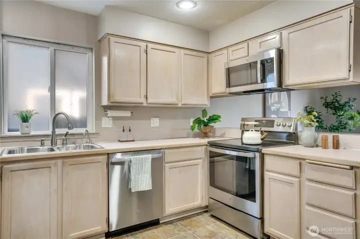 This kitchen has newer appliances and a pantry closet. Access to the mudroom where you'll find storage, washer dryer and access to the two car garage.