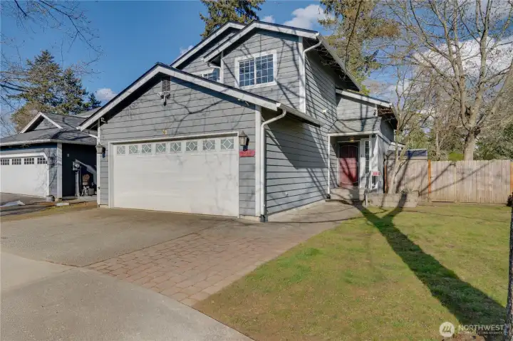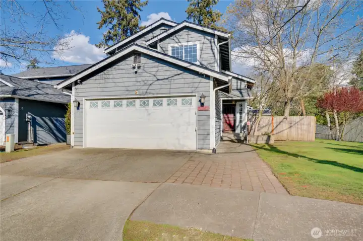 Tucked away in a quiet, lesser-known cul-de-sac of newer homes called Hunter's Praire, this hidden pocket of the city offers a rare sense of community with unbeatable access to I-5, JBLM, Downtown Tacoma, and Tacoma Mall, convenience without the noise. Enjoy peace of mind with a newer roof, fresh exterior paint, new appliances, and a new furnace with A/C. The fully fenced backyard offers privacy, plus two extra sheds for storage. Inside, vaulted ceilings create an airy, welcoming feel, with comfortable living and dining spaces, a utility room, and a guest half bath on the main level. Upstairs, the spacious primary suite features a private bath with dual vanities, soaking tub, and walk-in closet, along with two additional bedrooms and a full bath. A roomy two-car garage with built-in storage completes this value-packed home designed for easy, connected living in a location most people don’t even know exists. Fully fenced yard that backs up to Oak Tree Park with acres of natural beautify!