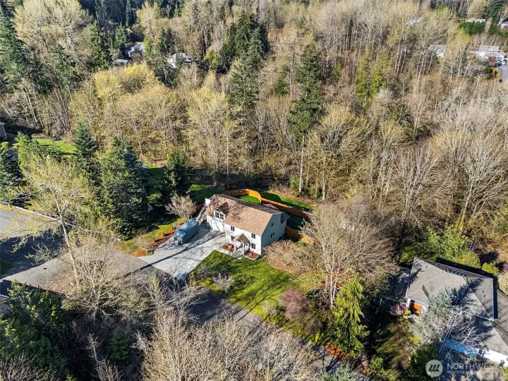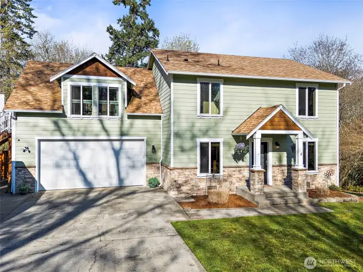 Set on a spacious acre+ lot just a short stroll to Lake Tapps Park, this beautifully maintained two-story home offers flexibility, comfort, and room to grow. The light-filled kitchen features granite counters, stainless steel appliances is open concept with an eat-in island, and a walk-in pantry, and a large gathering room with gas fireplace—perfect for everyday living and effortless entertaining. The versatile floor plan includes a main floor office, designated laundry, formal living and dining spaces. Upstairs has been thoughtfully configured as a secondary living space with private access, electric fireplace, second washer/dryer, and kitchen prep area offering incredible potential for multi-generational living or an easy conversion back to a luxurious primary suite with a walk-in closet and en suite bath. In total, enjoy three bedrooms, a large bonus room, and 2.5 bathrooms. Step outside to a fenced backyard with an expansive deck—ideal for entertaining or relaxing. The outbuilding provides additional flexibility for a future office, studio, or storage. With RV parking, two car garage, no HOA, mature landscaping, and charming curb appeal, this property blends lifestyle, space, and versatility in a very private and serene setting in a prime location.