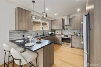 Positioned in the heart of Seattle’s sought-after University District, this exceptional property offers a rare blend of scale, flexibility, and top-tier craftsmanship just moments from the University of Washington. The main residence spans 2,940 sqft, complemented by a fully detached 1,058 sqft DADU—creating an outstanding opportunity for multi-generational living, rental income, or owner-occupied investment. Both the main home and detached unit have been completely and extensively remodeled with permits, featuring a new roof, new siding, new windows, updated plumbing, and modern electrical systems. Inside, every detail reflects quality and intention, with brand-new cabinetry, designer countertops, and premium appliances throughout, including a fully renovated lower-level kitchen. The spacious basement offers a separate entrance and functions as a private, fully remodeled living space. Large windows flood the home with natural light, enhancing the open and inviting layout. The fully fenced backyard features low-maintenance professional landscaping and secure, electrically powered gate access, while the detached DADU provides true independence and privacy. Better than new in every sense, this is a turnkey, high-performance property in one of Seattle’s most vibrant and connected neighborhoods.