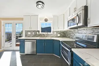 Welcome to a truly special home offering breathtaking views of Puget Sound, Vashon Island, and the Olympic Mountains. Ideally situated on a quiet street, this home provides a peaceful and private setting. With 1,920 sq ft of inviting living space, it features 3 bedrooms and 2 bathrooms with a functional layout that suits a variety of lifestyles. Newer Andersen windows fill the home with natural light and showcase the incredible views. The expansive deck is perfect for entertaining or simply relaxing year-round. The lower level offers an amazing family room, ideal for gatherings or additional living space. Recent updates include a newly remodeled bathroom, new washer and dryer, a new 50-year roof, and solar panels for energy efficiency and low utility costs. Set on a 3,200 sq ft lot, the mature, easy-care yard is fully fenced, creating a wonderful outdoor space.