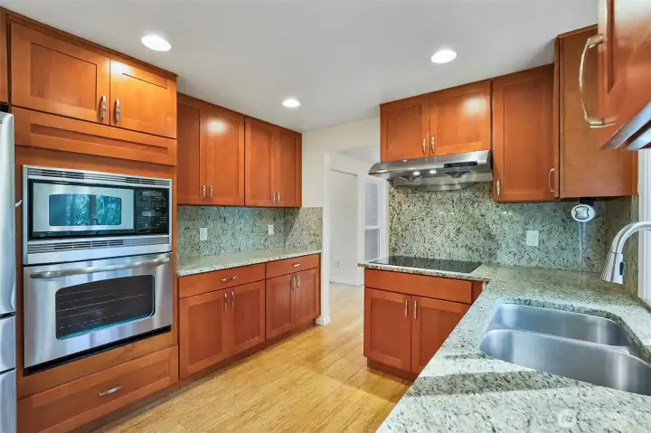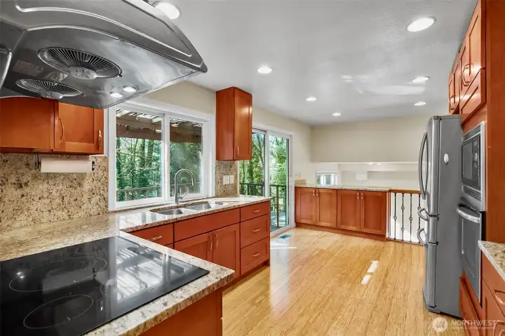 Welcome to your dream home in Bellevue’s prestigious Somerset neighborhood! This fully remodeled tri-level gem features 1,900 sq. ft. of living space on a 14,566 sq. ft. lot, with 3+1 bedrooms, 3 bathrooms, and a highly functional floor plan. You will be greeted by soaring vaulted ceilings with tons of natural lights from skylights that keep the home glowing year-round. Every inch has been tastefully updated—bamboo flooring throughout, tiled bathrooms with dual sinks and granite countertops, and a gourmet kitchen equipped with stainless steel appliances , an extra island w/more cabinet spaces and an access to a covered deck. A versatile bonus room with direct deck access offers the perfect footprint for a home office, guest room, gym, or media retreat. The oversized two-car garage features extra storage, and the spacious driveway accommodates additional parking. Outside enjoy the three-level deck that creates a private outdoor oasis—perfect for summer BBQs or quiet morning coffee. Located in the heart of the #1 school district in Washington, this is a rare opportunity to own a turnkey home in one of Bellevue's most iconic communities!
