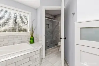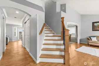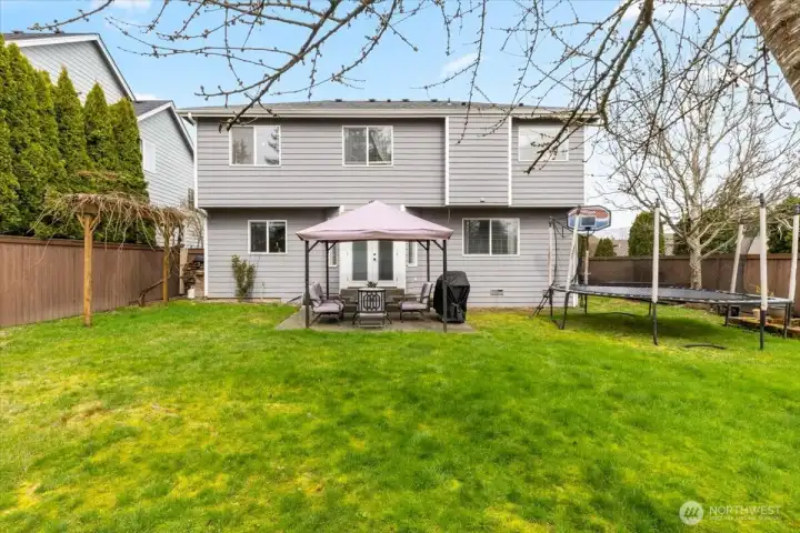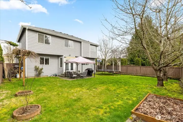 Welcome to this gorgeous, meticulously maintained 4-bedroom, 2.5-bathroom home nestled in a quiet neighborhood. Soaring ceilings greet you at the entryway, opening to a bright living room and an elegant formal dining area filled with natural light. The family room features a cozy gas fireplace and custom built-in shelving. The updated kitchen offers granite countertops, stainless steel appliances, and a cozy eating nook with direct access to the patio and gazebo. The home boasts newer interior and exterior paint, fully remodeled bathrooms featuring heated floors. A roof that is only a few years old. Upstairs, you’ll find four generously sized bedrooms, including a spacious primary suite with a luxurious five-piece bath adorned with stunning tile. Step outside to enjoy a private oasis with established fruit trees, a thriving garden area, and plenty of space to play, plant, or unwind. No HOA. Conveniently located near freeways, shopping, Trader Joe’s, Covington Costco, and Lake Meridian.