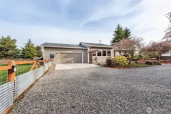 Sweet, thoroughly updated single-level home offering 1,594 SF, anchored by a spacious great room with wood stove and a wall of south-facing windows capturing a partial Olympic Mountain view. Formal dining with deck access, a primary suite with ¾ bath, two guest bedrooms, a full bath plus a 672 SF double garage with workshop area. Recent improvements include a brand-new roof, updated kitchen with quartz counters and stainless appliances, remodeled baths with quartz counters and tile floors, new windows and lighting, newer ductless heat pump, faux hardwood flooring, fresh paint, newer deck with hot tub and the list goes on. Situated well off the street for amazing privacy on just shy of a half-acre, featuring refreshed landscaping with loads of blooms, two greenhouses, raised garden beds, fully fenced backyard, and storage sheds. Plenty of room for RV parking or adding outbuildings. No active HOA. Terrific location convenient to both Sequim & Port Angeles amenities and loads of recreation nearby including the Cedars at Dungeness golf & restaurant and the Dungeness national wildlife refuge, beach access, spit & lighthouse.