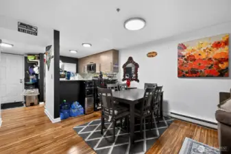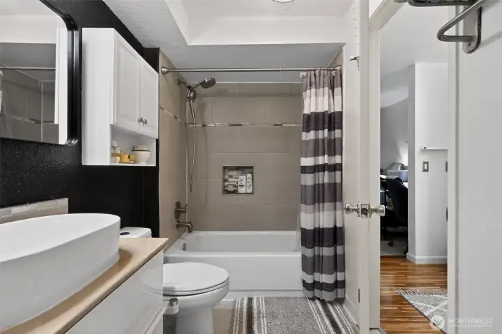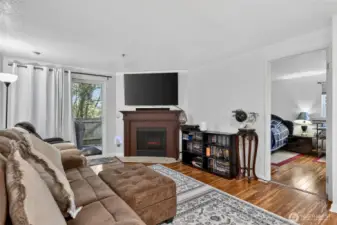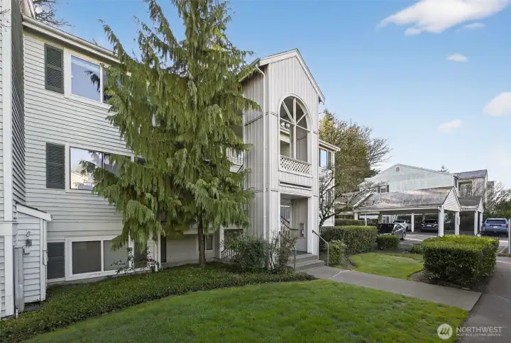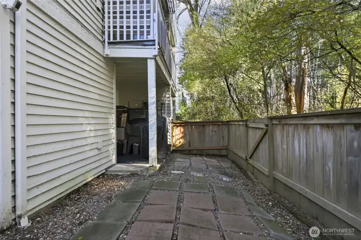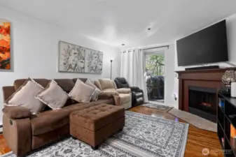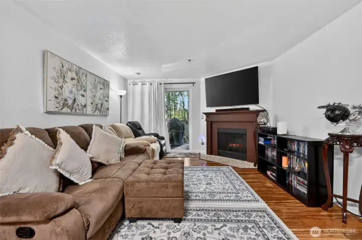 Ground-level convenience in this 2-bedroom, 1.25-bath home with direct access to your fully-fenced, private patio with a peaceful greenbelt backdrop extends your living space outdoors. Spacious interior features beautiful hardwood, bamboo, and ceramic tile flooring, updated fixtures, modern lighting, and a wood-burning fireplace. Kitchen features ample cabinetry and counter space, stainless steel appliances, quartz countertops, soft-close cabinetry with a glass tile backsplash and is open to the dining area. Primary bedroom is generously sized with greenbelt views, a private dressing station, walk-in closet, and a sink/vanity. Convenient full Jack & Jill bath connects to the second bedroom. Stackable washer/dryer complete this incredibly convenient, easy-living home. Along with designated parking and guest parking, the community amenities include a clubhouse, fitness center, game/rec room, hot tub, and outdoor pool—expanding your living and recreation options. HOA dues cover water, sewer, and garbage. Secluded yet conveniently located near public park with walking trails, transit options, Sounder Train, shopping, dining, and entertainment at Kent Station. ONLY non-conforming conventional loan options. $5,000 towards Buyer Closing Costs!!!