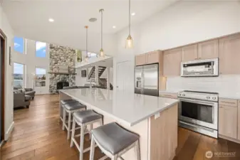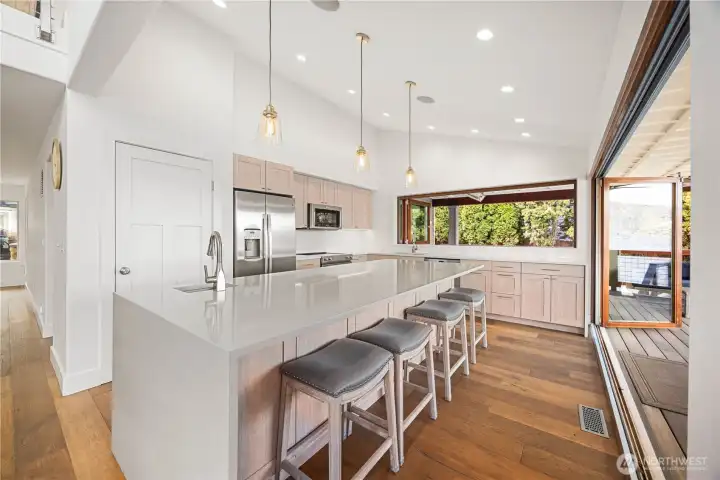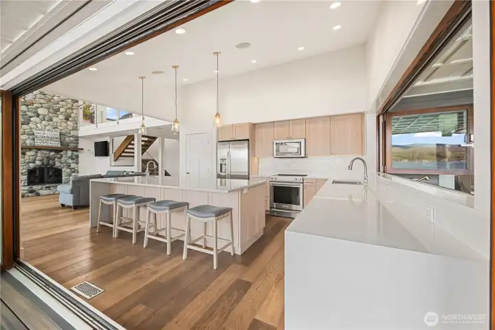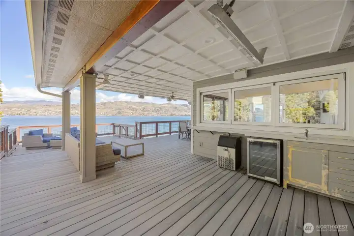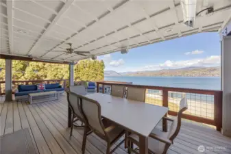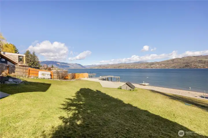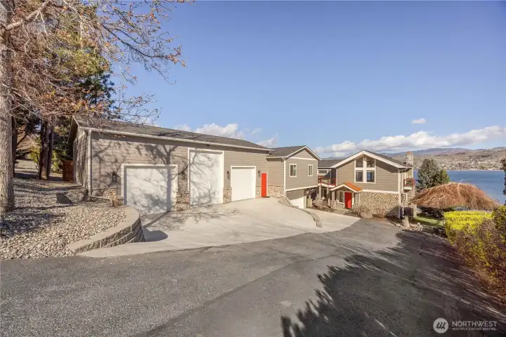 Set along 83 feet of coveted waterfront on the South Shore of Lake Chelan, this fully remodeled Craftsman-style retreat was designed for effortless indoor-outdoor living and unforgettable gatherings. Accordion-style walls & windows open the heart of the home to a covered lakeside entertaining terrace with heaters, a wet bar area and speakers, creating a seamless transition between indoors and out. Soaring ceilings and floor-to-ceiling windows frame expansive lake views and fill the great room and upper loft with light. The layout features 4 bedrooms, including a main-level primary suite, plus a loft, office, and game room, all centered around an entertainment-sized kitchen designed for hosting. The lower level is comprised of a game room, BR, laundry and 3/4 bath. The upper level has the loft, a full BA, office (with Murphy Bed) and walk-way to the detached ADU which is also accessible via a private entry at the garage. Outside, the waterfront offers a newer bulkhead, private dock with boat lift, buoys, and steps into the lake for easy access to the water. A 1,120 square ft garage accommodates up to 5 cars, has 400 amp power, a built-in pressure washer and could easily accommodate EV charging. Above it, the 720 square foot 1 BR/1 BA ADU with its own view deck provides the perfect space for guests. A rare opportunity to own a home designed as much for gathering as it is for relaxing moments on the lake. A place to make memories now and an investment to hold for generations.