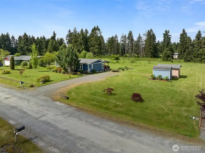 Tucked away on a quiet dead-end street, this charming Rochester property offers the perfect blend of privacy, comfort, and usable land. Situated on 1.25 acres of level ground, there’s plenty of room to spread out—whether you’re looking to garden, entertain, or simply enjoy peaceful country living. This nearly 1,200 sq ft home features a functional 3-bedroom split floorplan, providing added privacy between the primary suite and guest rooms. Two full bathrooms offer convenience for both daily living and guests. The inviting layout maximizes space and flow, making the home feel open and comfortable. Step outside to a covered rear deck—ideal for year-round enjoyment, from morning coffee to evening gatherings and star gazing. The property is dotted with mature fruit trees, including apple, cherry, and pear, creating a beautiful and productive outdoor setting. Two storage sheds provide ample space for tools, hobbies, or extra storage needs. Whether you're looking for a starter home, downsizing, or seeking a little extra elbow room, this property delivers quiet rural living setting while still being conveniently located only minutes from I-5.