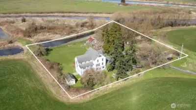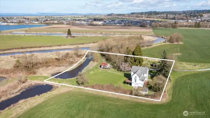 Rare opportunity to own a piece of Stanwood history. Built in 1890, this legacy retreat surrounded by almost 1000 acres has seen only four owners in 136 years & on the market for the first time in over two decades w/views from every room! Tucked at the end of a breathtaking 1,600’ private drive, feels like you are living in a park, the property offers seclusion w/no neighbors in sight. Spanning 316’ of medium-bank waterfront, this is a front-row seat to PNW’s finest wildlife: Trumpeter swans, snow geese, blue herons, river otters, & eagles. The ocean-accessible waterway is perfect for fishing & a truly sustainable lifestyle.The grounds feature an established orchard w/Asian pears tree & other fruit trees, plus room for garden area. Thoughtfully constructed on a significant elevated building pad for peace of mind & commanding views, the home features a massive basement w/radiant floor heating—ideal for a climate-controlled workshop, hobby space, or superior storage. While you will feel worlds away in this private retreat, you are remarkably close to modern amenities - minutes from downtown Stanwood’s shopping, groceries, & dining, w/quick freeway access for commuting. Experience the perfect blend of 19th-century charm, total privacy, and 21st-century convenience. This is a once-in-a-generation private waterfront retreat is waiting for its fifth steward to call it home. Discover the peace, history, & unparalleled beauty of this Historical Landmark Jorgensen HOMESTEAD today.