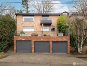 Perched in the heart of Phinney Ridge, this classic mid-century brick triplex blends timeless character with strong investment potential. The property features three well-appointed units, each with spacious layouts, abundant natural light with views of the Olympic Mountains, and period details that tenants love—hardwood floors, large picture windows, and solid construction throughout. Currently there is one vacant and staged unit for easy showings. The largest 3 bedroom unit will be available soon, for trouble free market rate lease updates and/or renovations, and wonderful owner occupant potential. The building offers a desirable mix of privacy, walkability and easy parking with three street facing garages. Residents enjoy easy access to neighborhood favorites—local cafés, parks, boutique shops, and major transit routes. Downtown Seattle is just minutes away. The durable brick exterior and mid-century design provide lasting curb appeal and low-maintenance ownership. Whether you're an investor seeking steady rental income or an owner-occupant looking to offset your mortgage, this triplex delivers flexibility and long-term upside in one of Seattle’s most sought-after neighborhoods. Don’t miss this rare opportunity to own a piece of Phinney Ridge charm with built-in income potential. Full Inspection available after showing.