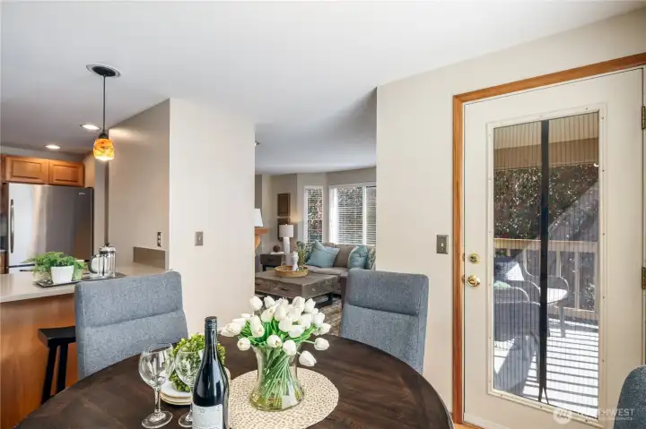 The stellar location of this Edmonds Townhome is hard to beat. Great layout offers cozy living & dining areas with access to deck space, an open kitchen with eating bar, a wood-burning fireplace, and a half bath on the main level. The upper level features a large primary bedroom with attached 3/4 bath, a second bedroom, and a full bathroom. Parking is super easy as the unit offers a generously-sized, attached two car garage with extra parking out front. Conveniently close to everything that makes Edmonds Edmonds! The Edmonds Center for the Arts, one of the premier performing arts centers in the Pacific Northwest is less than a block away. Civic Field with nearly 8 acres of paths & gardens, pickleball, and grassy areas to just relax is just two blocks to the south. The heart of Downtown Edmonds' vibrant restaurant district with galleries, coffee shops, shopping, and a historic movie theater are an easy stroll away. Several beaches, the ferry, and the train station are also within a short distance. The Edmonds Summer Market springs to life in May, offering fresh produce & flowers, handmade crafts & artwork from local artisans - a delightful way to spend a Saturday! 610 Glen Street brings you the sought-after Edmonds Lifestyle just outside your front door, making it easy to love where you live!