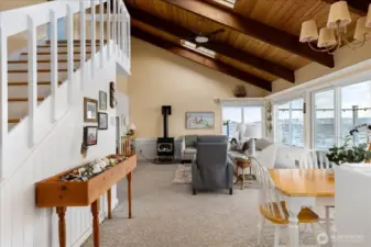 Whidbey Shores — a rare waterfront retreat on Langley’s coveted sand spit. Wake up to breathtaking mountain views and the serene beauty of the Puget Sound from your own beachfront sanctuary. Enjoy front-row seats to daily wildlife—watch majestic eagles soar, playful seals gather along the shore, and whales pass just yards from your deck. Inside, vaulted ceilings and expansive windows invite the beauty of the Pacific Northwest indoors, filling the home with natural light and coastal charm. This sun-filled retreat features an open-concept layout, walls of windows, and warm wood finishes that create the perfect blend of comfort and style. If you’ve been searching for a peaceful escape, your own crabbing beach, and true waterfront living—this island gem delivers. Take in breathtaking sunrises and golden summer sunsets over Saratoga Passage with views stretching to Mt. Baker. Outdoor living shines with composite beachside decking and a sunny front deck—ideal for entertaining or simply soaking in the surroundings. A community boat ramp makes it easy to get out on the water anytime. Short-term rentals are allowed, offering flexibility and income potential. Selling fully furnished, including kayaks, crab pots, nets, fishing poles, life jackets, skiff and motor and SO much more
